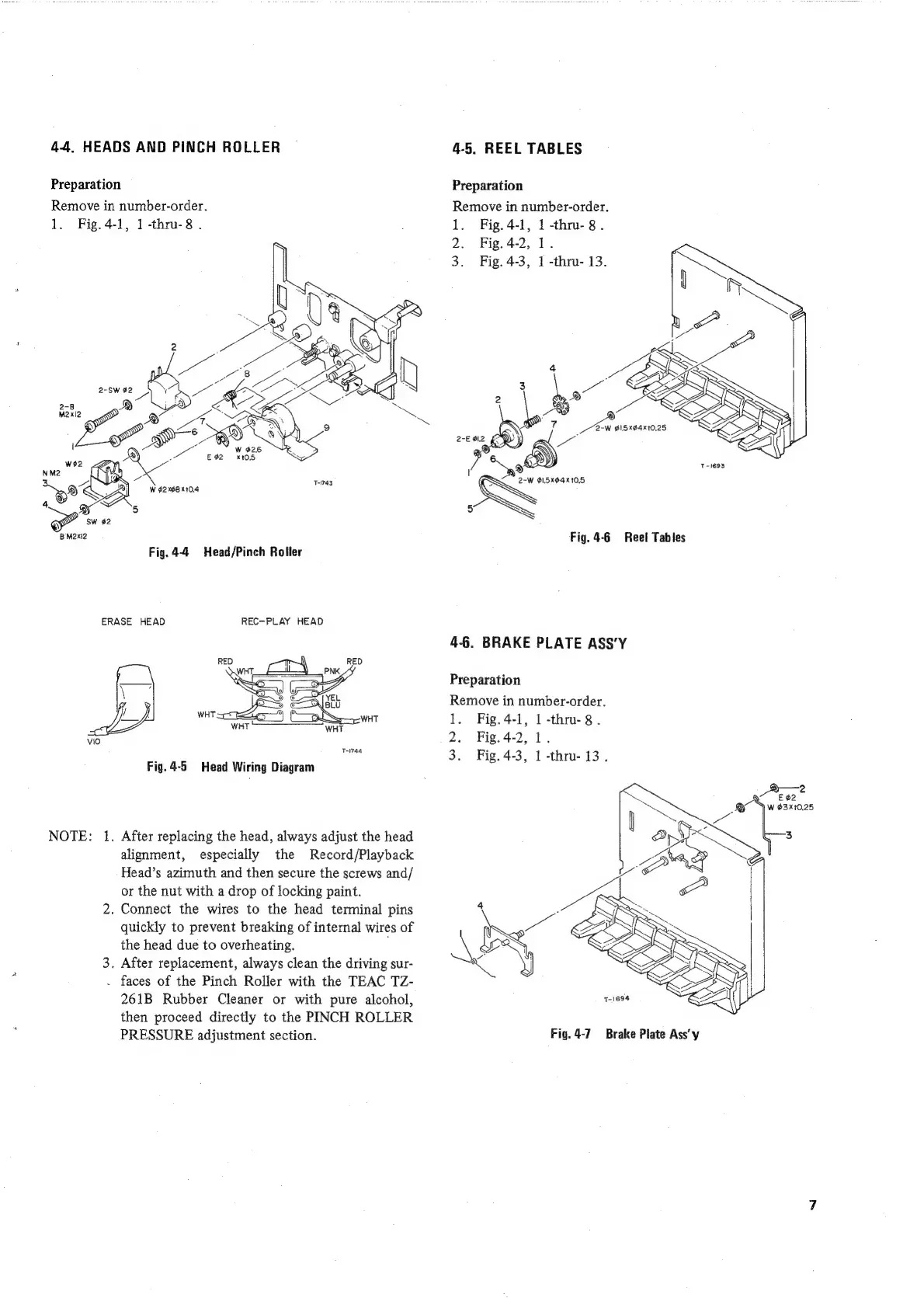 Teac A-300 - Disassembly Procedures (Continued); Cassette Holder, Heads, Pinch Roller, Reel Tables Disassembly
