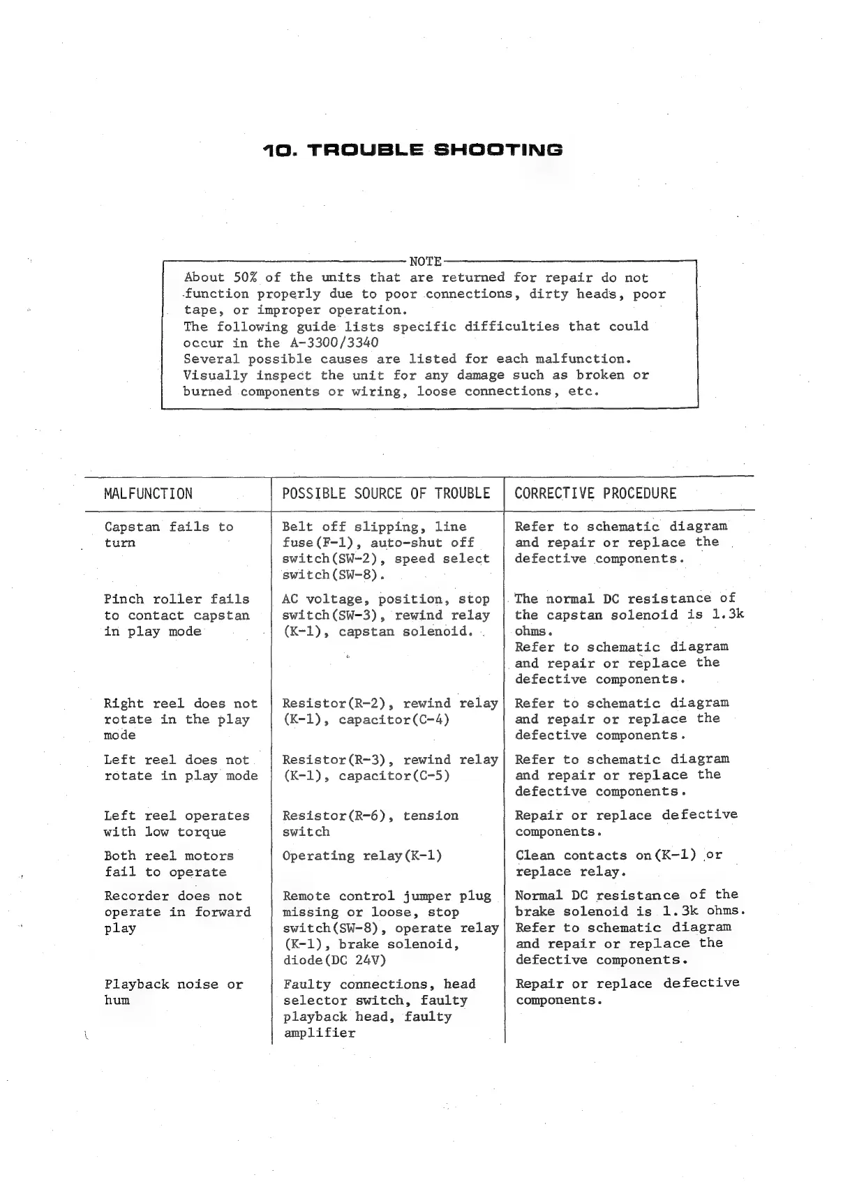 Teac A-3300 - 10. TROUBLE SHOOTING