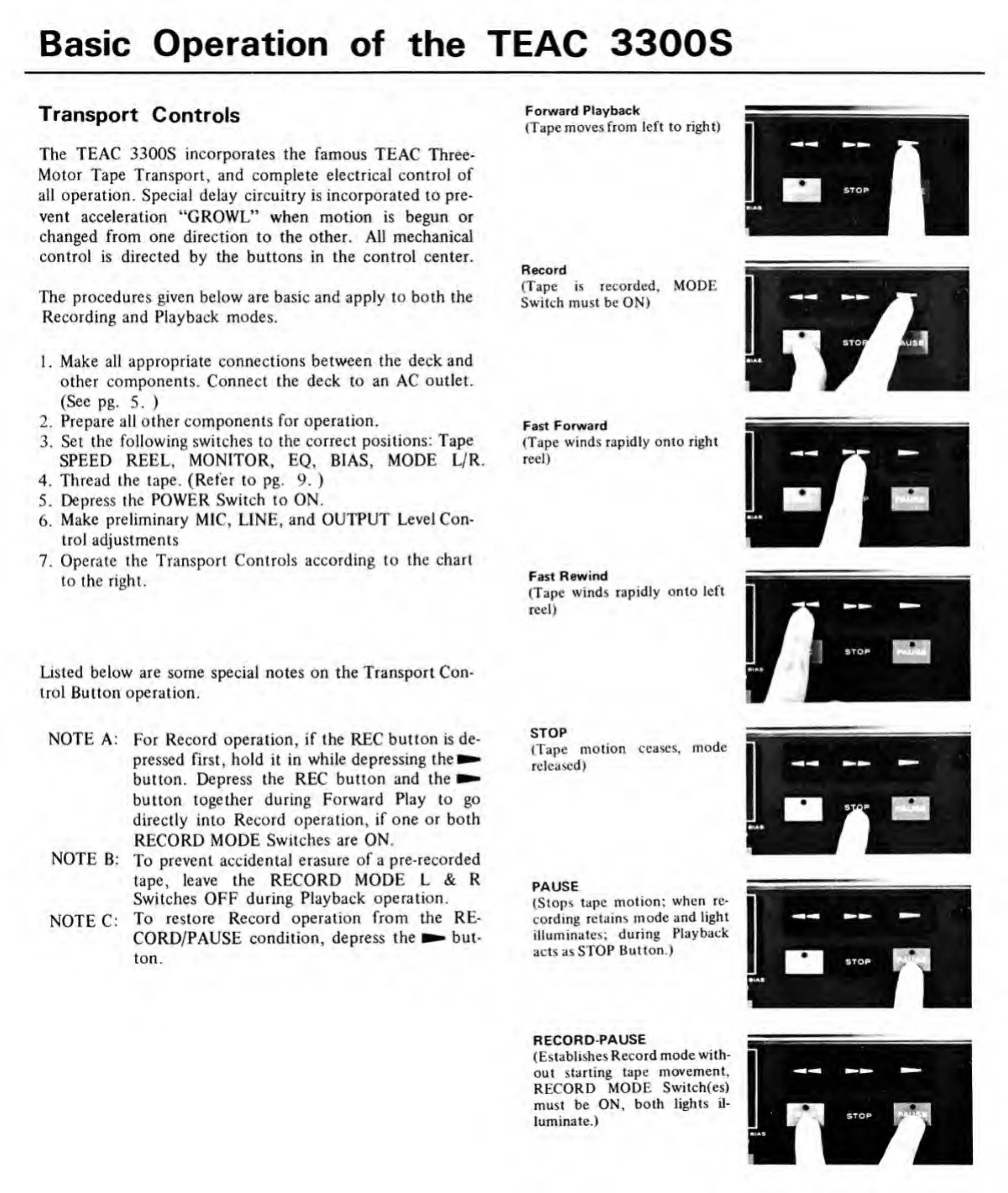 Teac A-3300S - Basic Operation of the TEAC 3300 S; Transport Controls