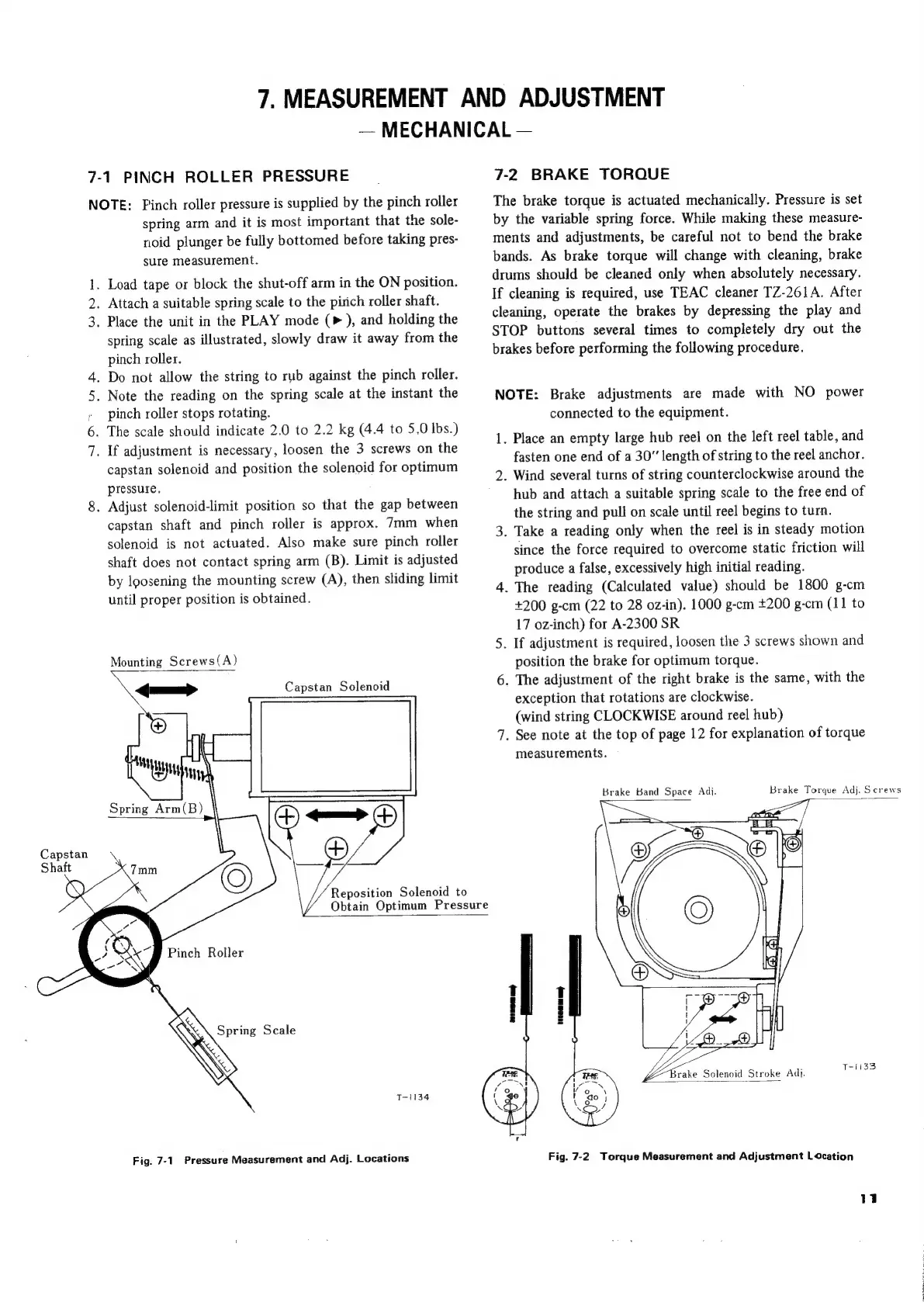 Teac A-3300SR - Measurement and Adjustment - Mechanical; Pinch Roller Pressure Measurement; Brake Torque Measurement