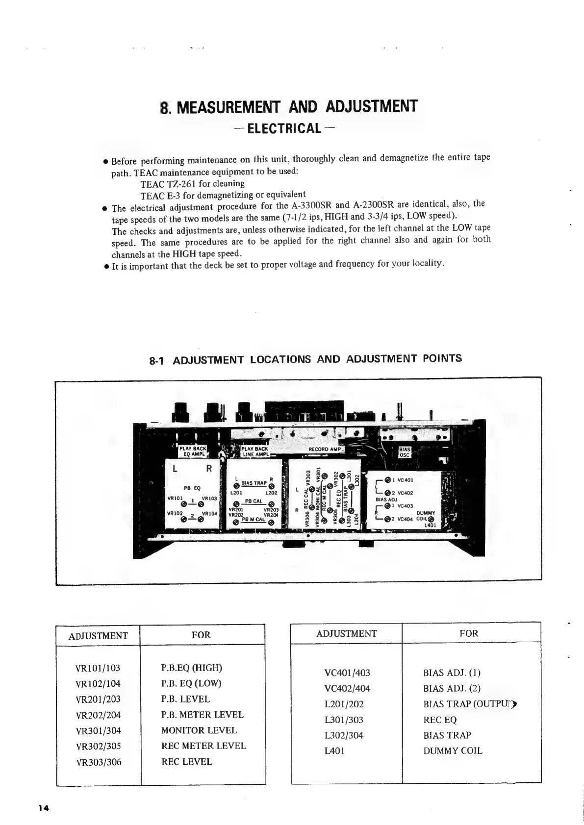 Teac A-3300SR - Measurement and Adjustment - Electrical; Adjustment Locations and Points