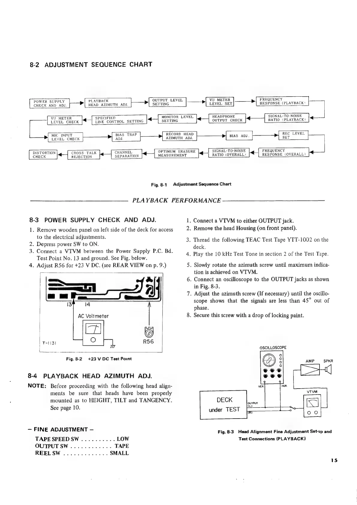 Teac A-3300SR - Adjustment Sequence Chart; Power Supply Check and Adjustment; Playback Head Azimuth Adjustment