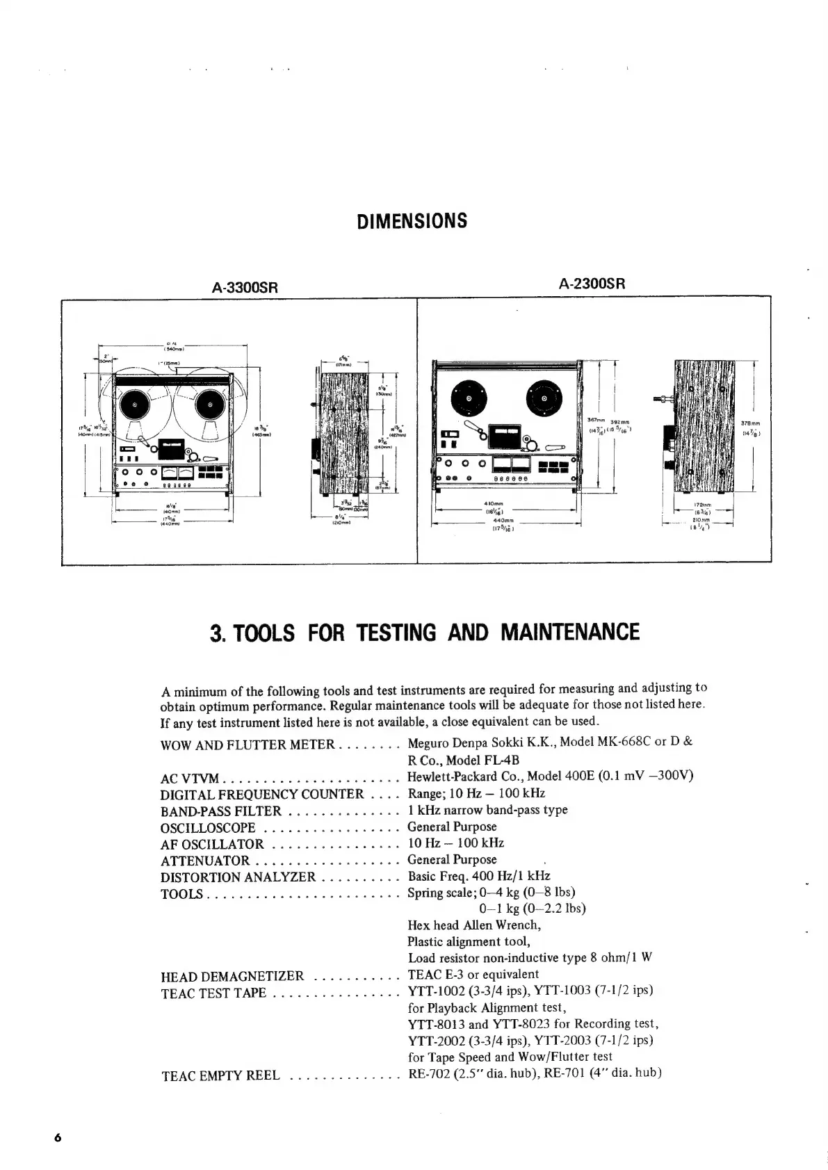 Teac A-3300SR - Tools for Testing and Maintenance; Essential Test and Maintenance Tools