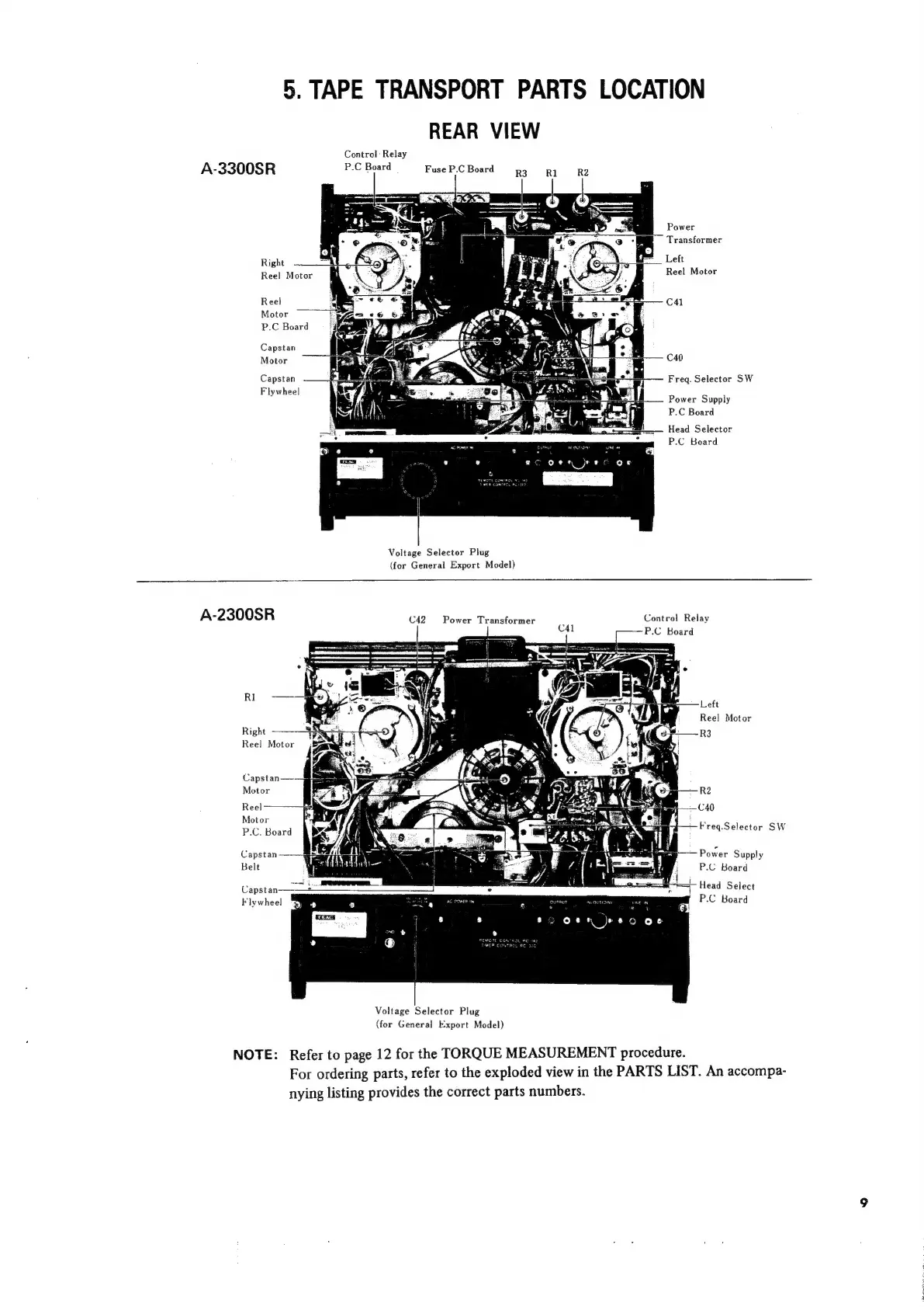 Teac A-3300SR - Tape Transport Parts Location; Rear View Component Identification