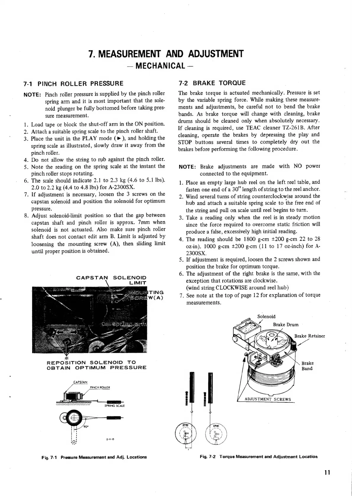 Teac A-3300SX - Measurement and Adjustment - Mechanical -; Pinch Roller Pressure; Brake Torque