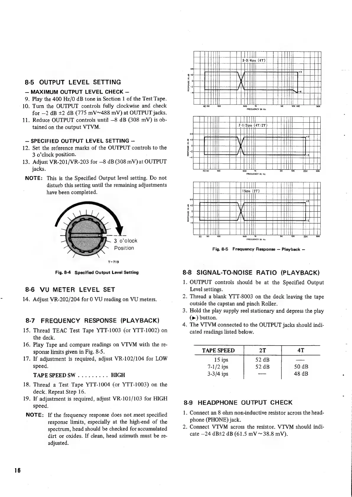 Teac A-3300SX - Output and Meter Level Settings; Playback Performance Checks