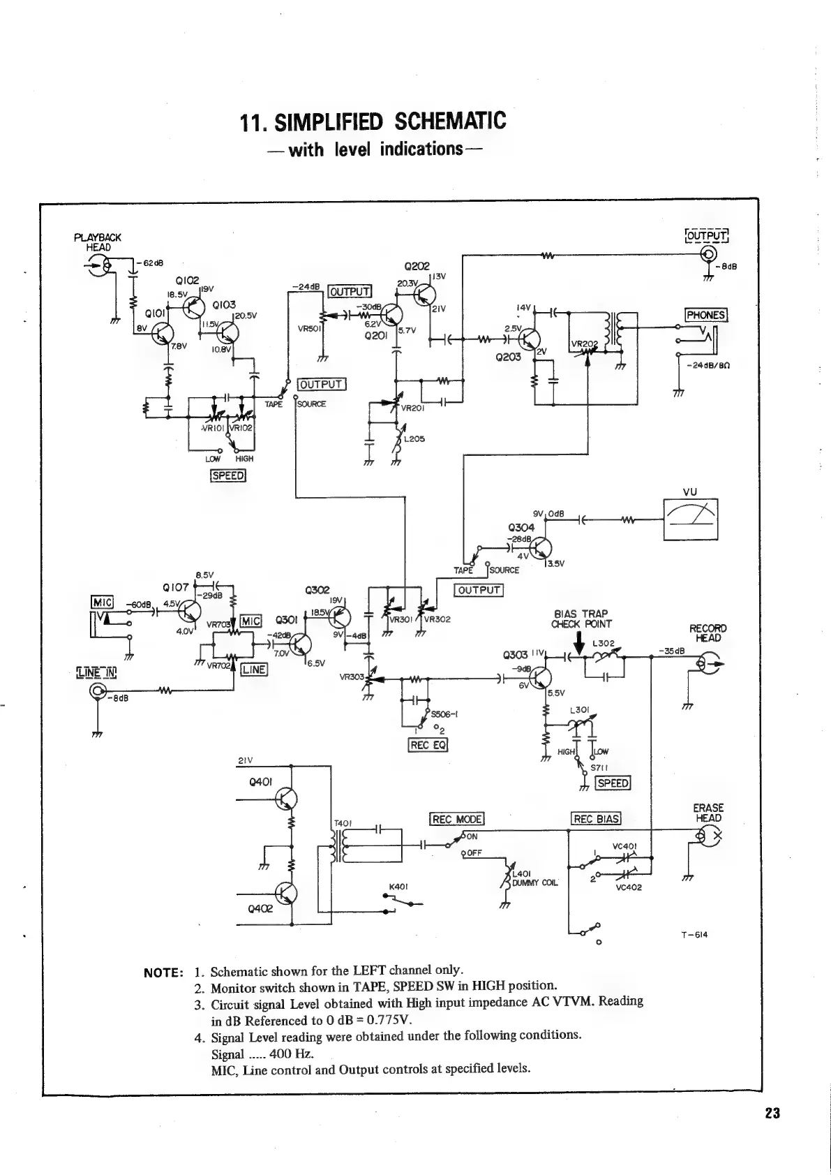 Teac A-3300SX - Simplified Schematic with Level Indications