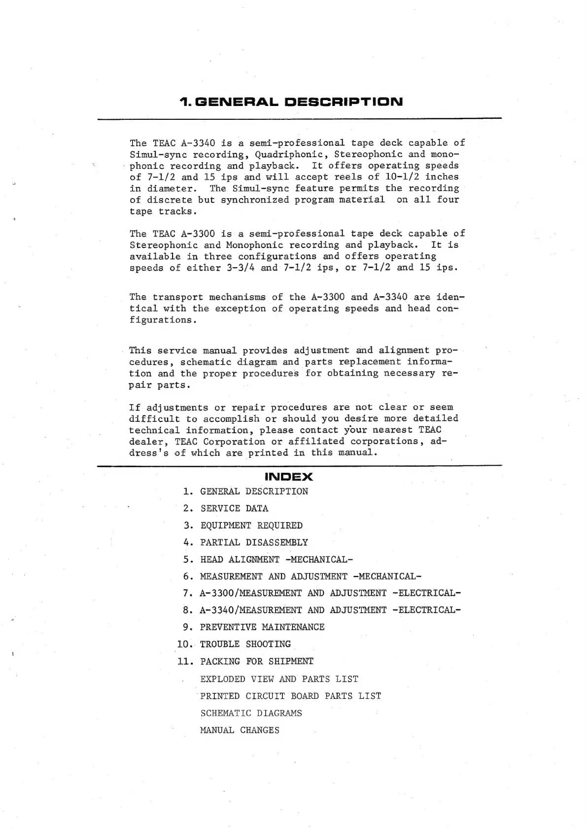 Teac A-3340 - 1. GENERAL DESCRIPTION