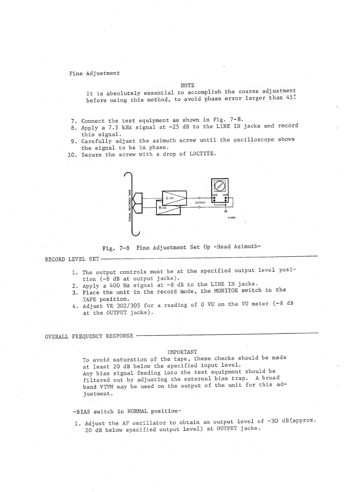 Teac A-3340 - RECORD LEVEL SETTING; OVERALL FREQUENCY RESPONSE