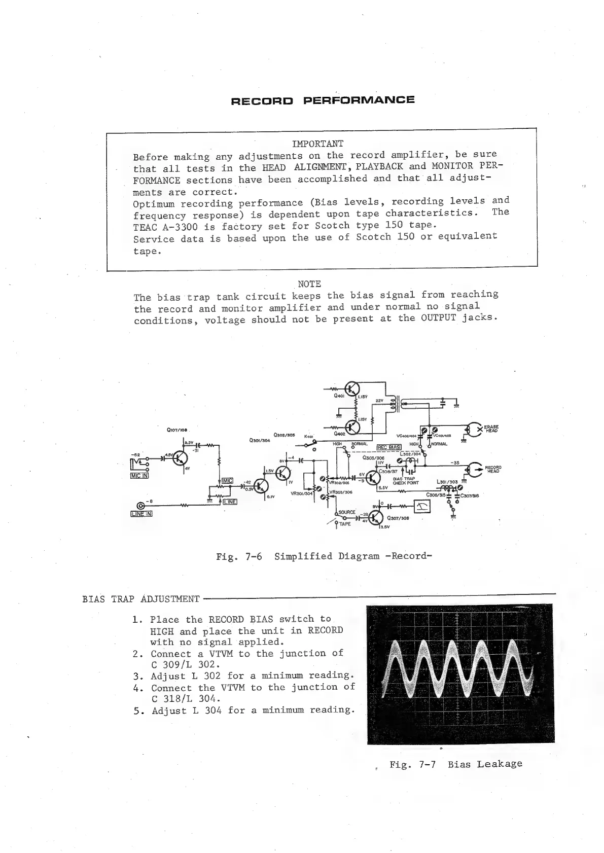Teac A-3340 - RECORDING PERFORMANCE DETAILS; BIAS TRAP ADJUSTMENT