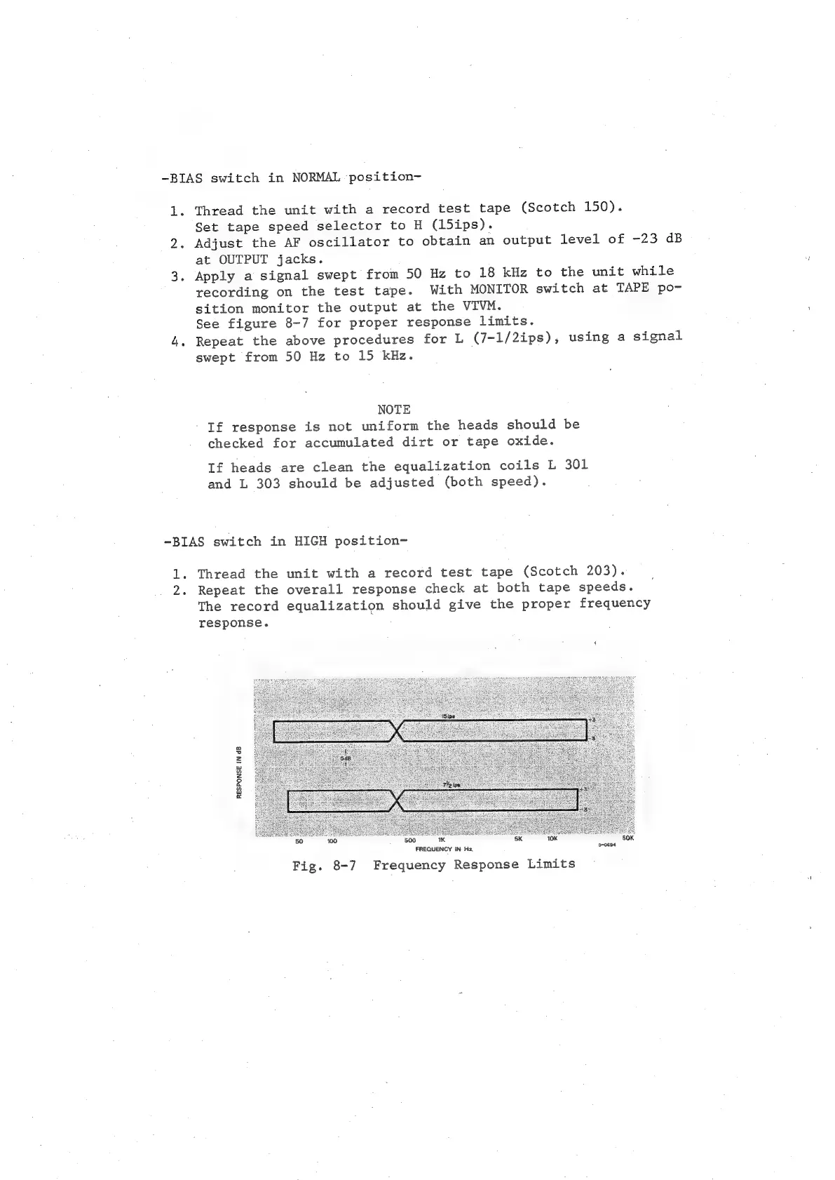 Teac A-3340 - BIAS SWITCH MODE PROCEDURES; NORMAL POSITION OPERATION; HIGH POSITION OPERATION