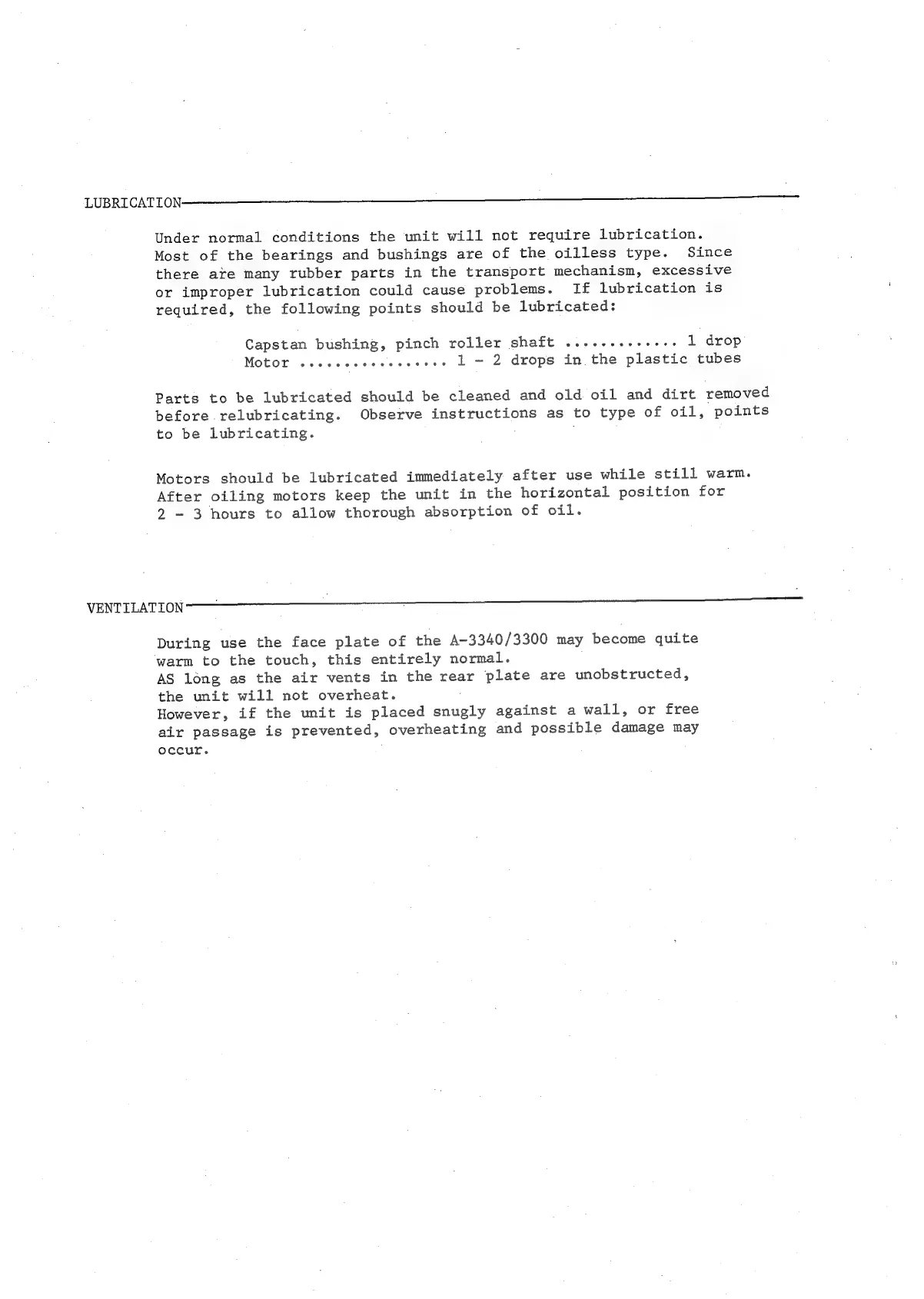 Teac A-3340 - LUBRICATION AND VENTILATION GUIDELINES; LUBRICATION GUIDELINES; VENTILATION PRECAUTIONS