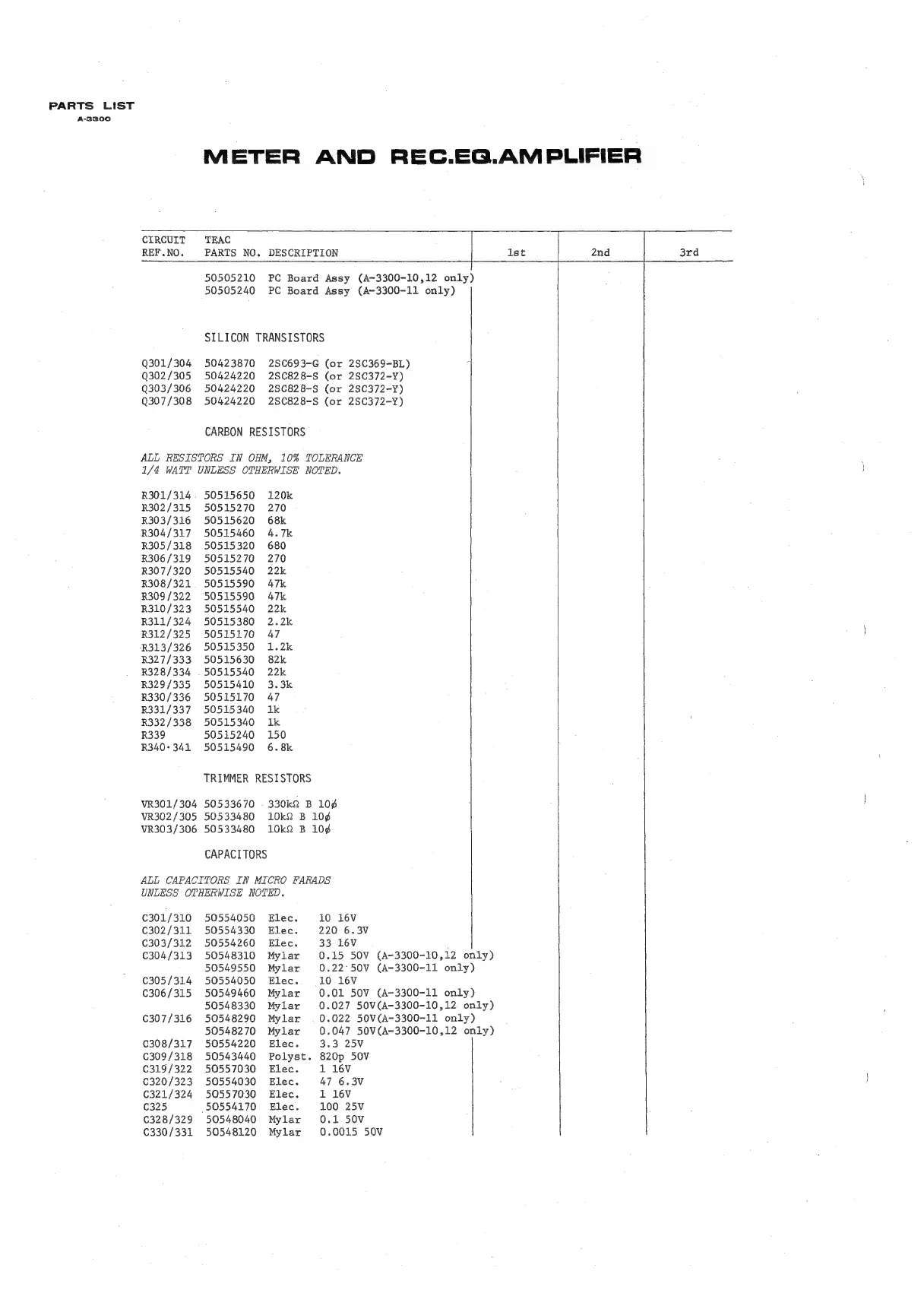 Teac A-3340 - METER AND REC.EG.AMPLIFIER PARTS