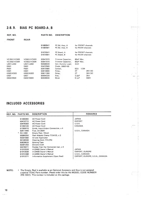 Teac A-3340S - Included Accessories; Ref.no; Japan; U.s.a
