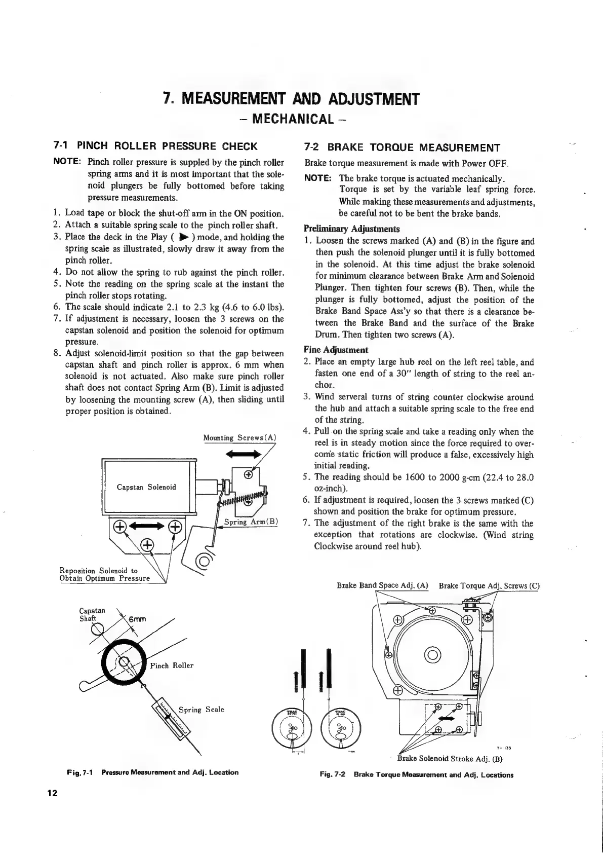 Teac A-3440 - Measurement and Adjustment - Mechanical; Pinch Roller Pressure Check; Brake Torque Measurement