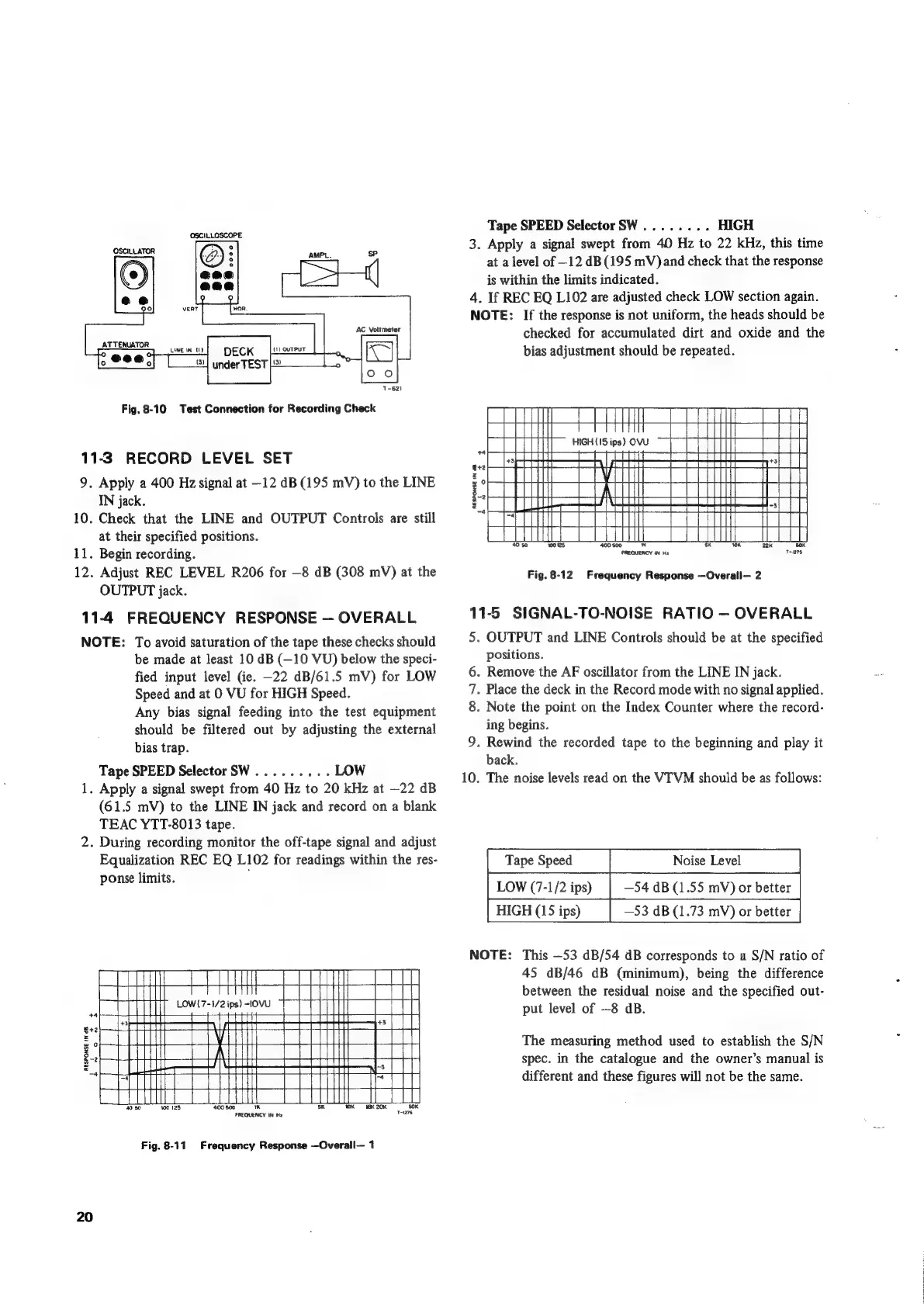 Teac A-3440 - Record Level Set; Frequency Response - Overall; Signal-to-Noise Ratio - Overall