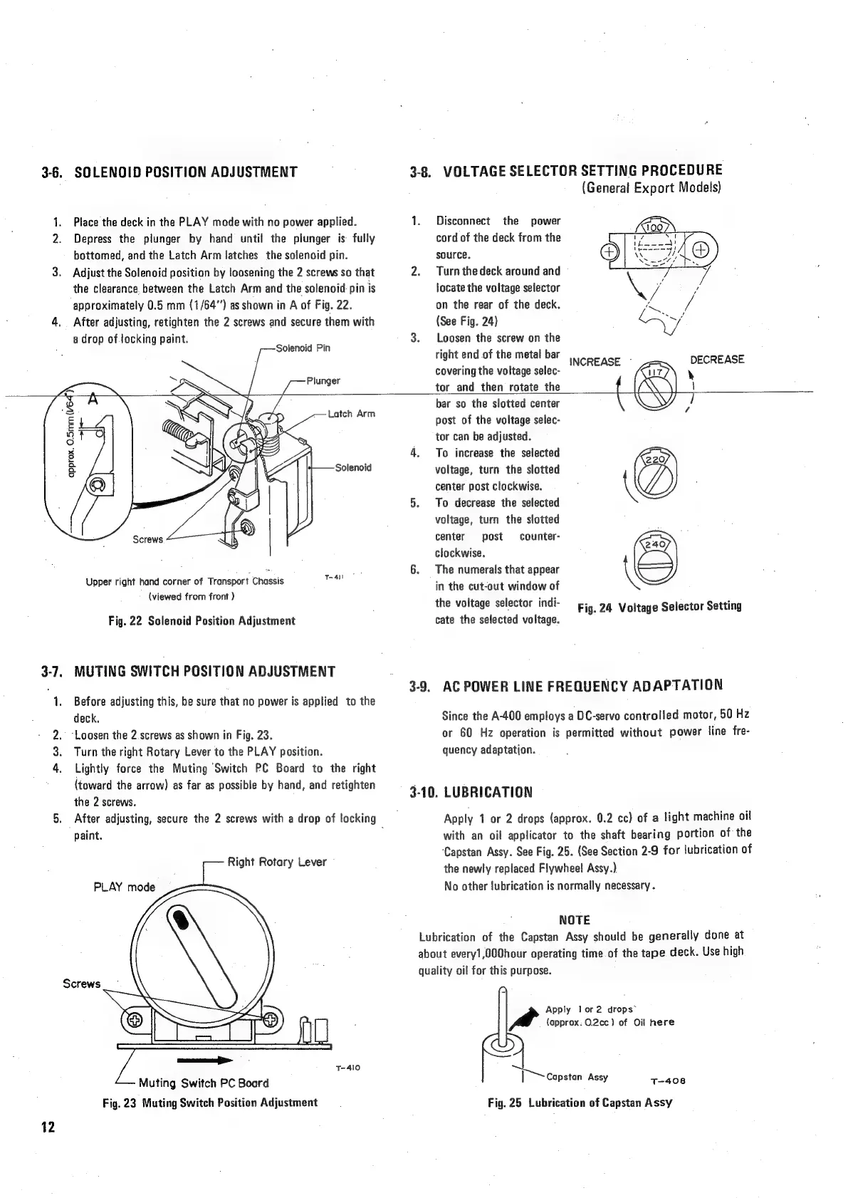 Teac A-400 - Solenoid and Muting Switch Adjustments