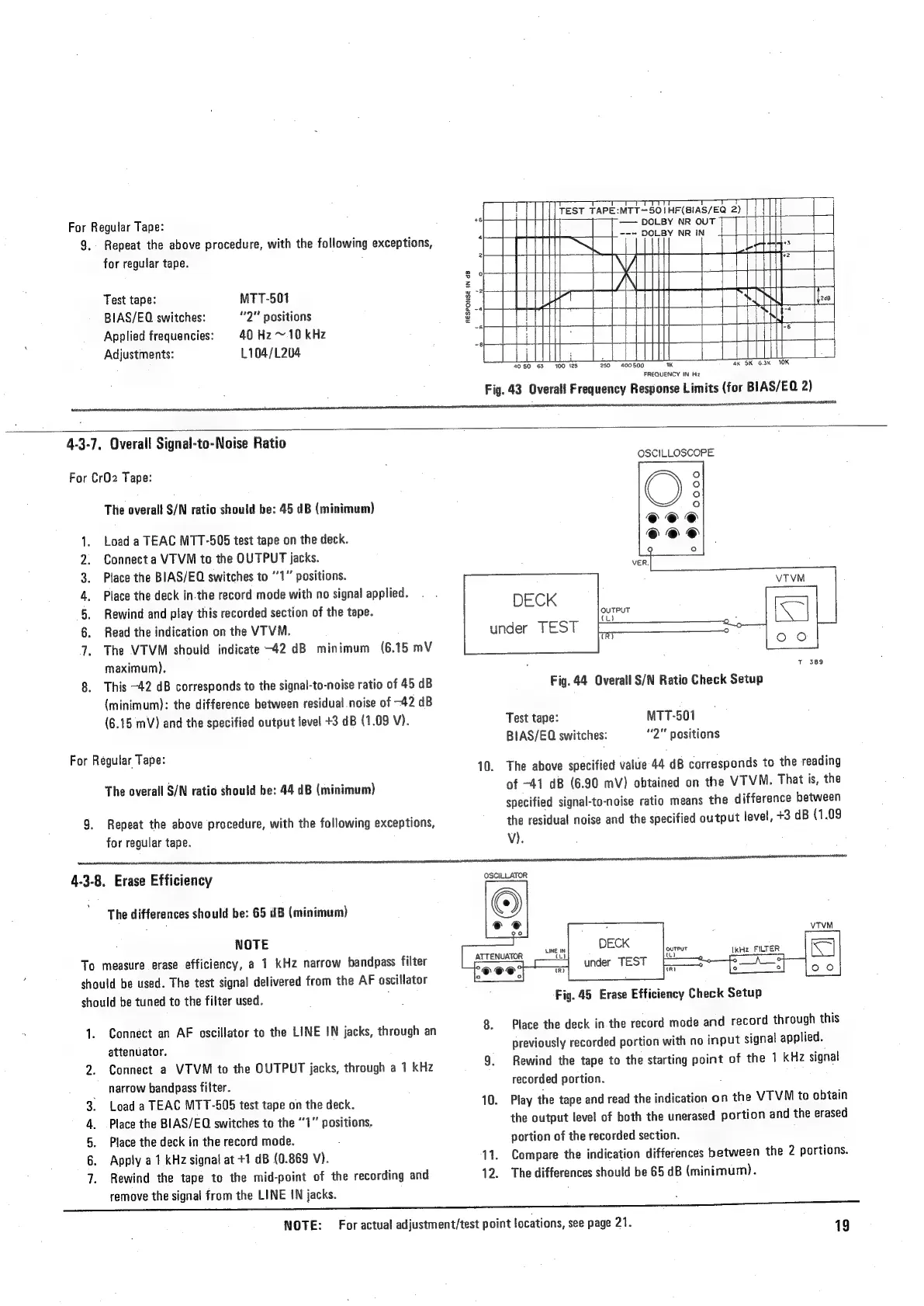 Teac A-400 - Overall Signal-To-Noise Ratio; Erase Efficiency