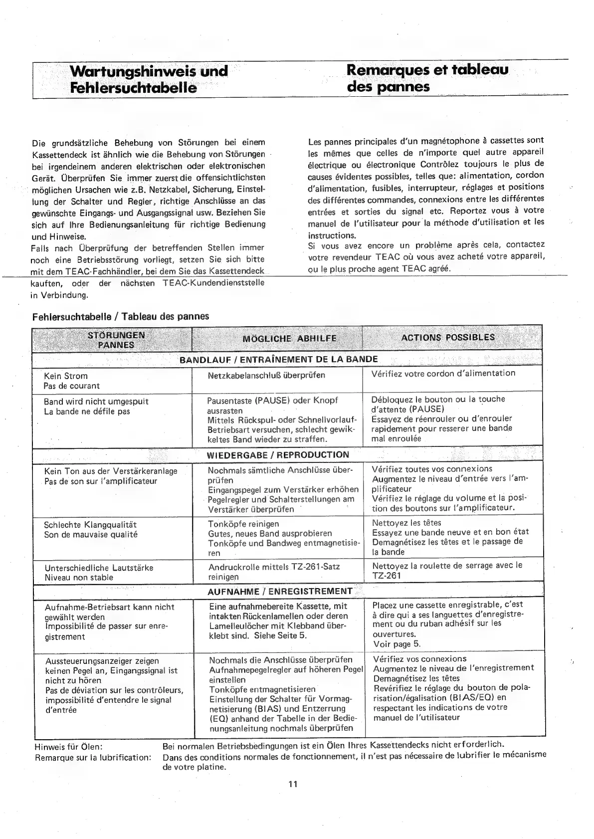 Fehlersuchtabelle