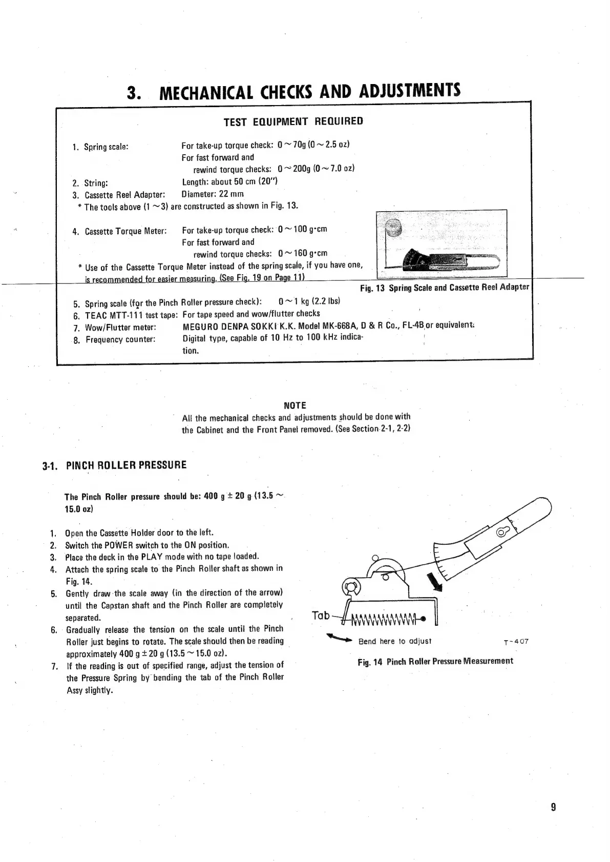 Teac A-400 - Mechanical Checks and Adjustments; Pinch Roller Pressure Adjustment