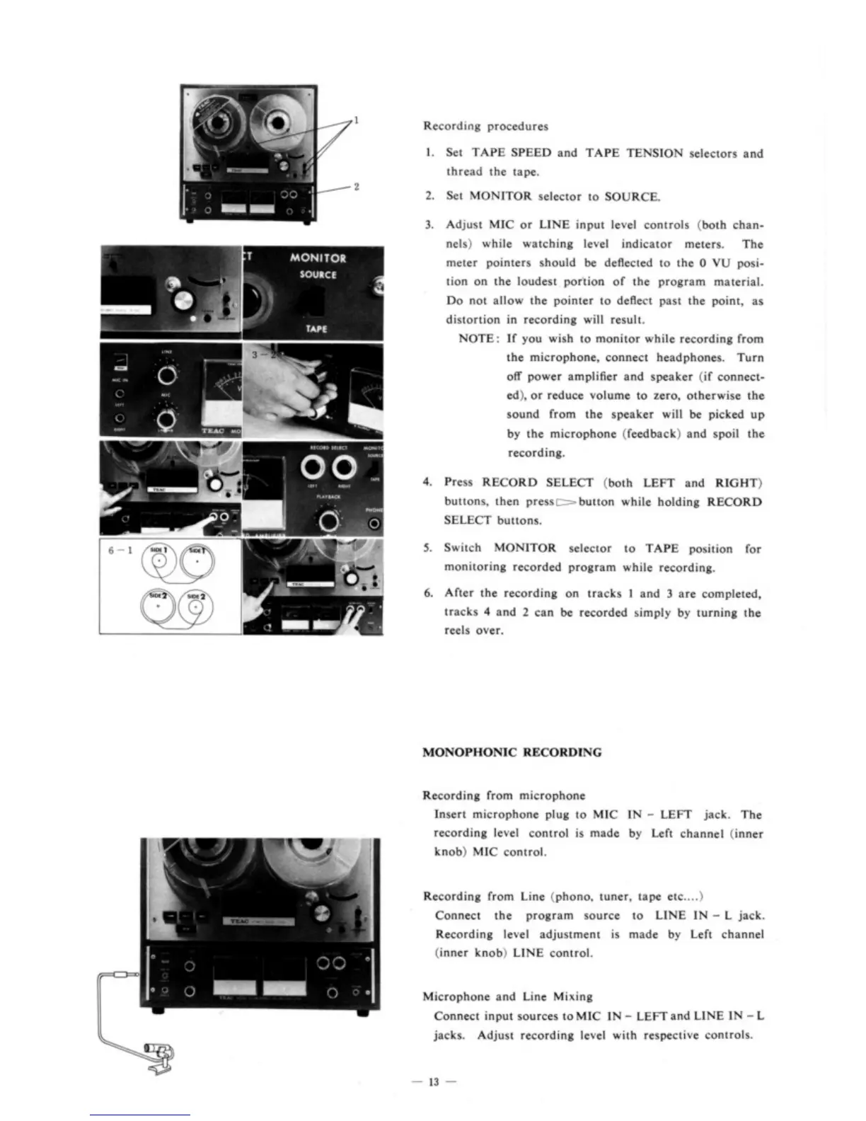 Teac A-4000S - Monophonic Recording; Recording from Line; Microphone and Line Mixing