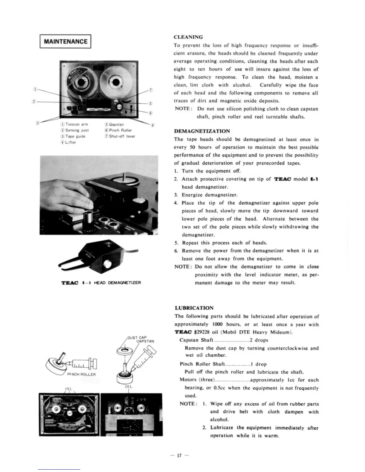 Teac A-4000S - Maintenance; Cleaning; Demagnetization; Lubrication