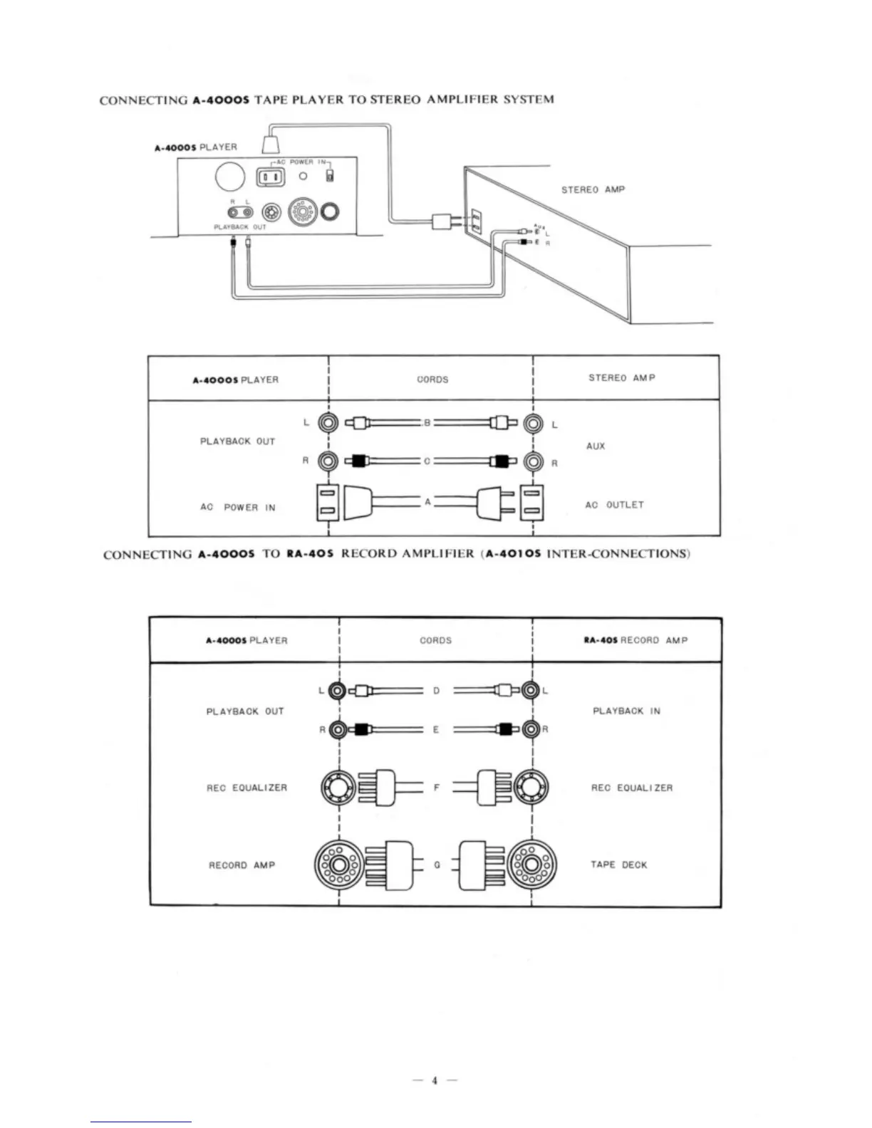 Teac A-4000S - Connecting Tape Player to Stereo Amplifier System; Connecting to Record Amplifier