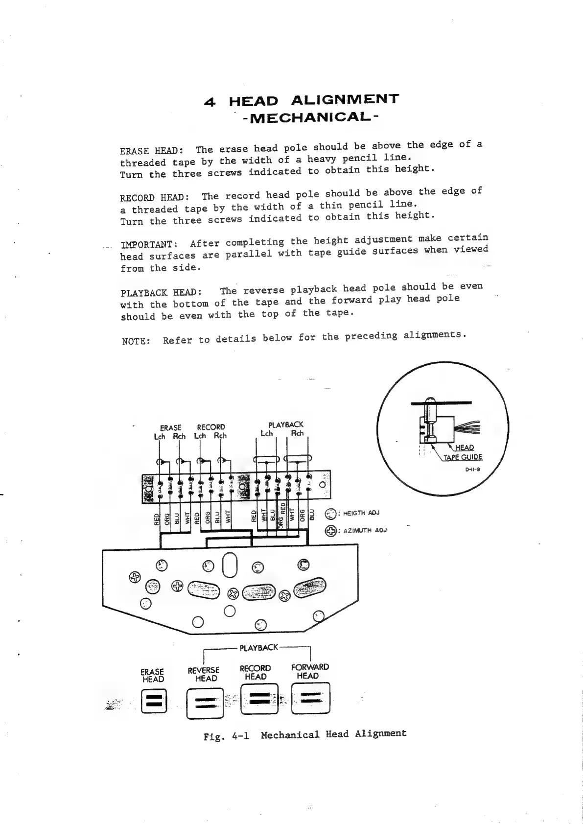 Teac A-4010GSL - Mechanical Head Alignment; Erase, Record, and Playback Head Alignment