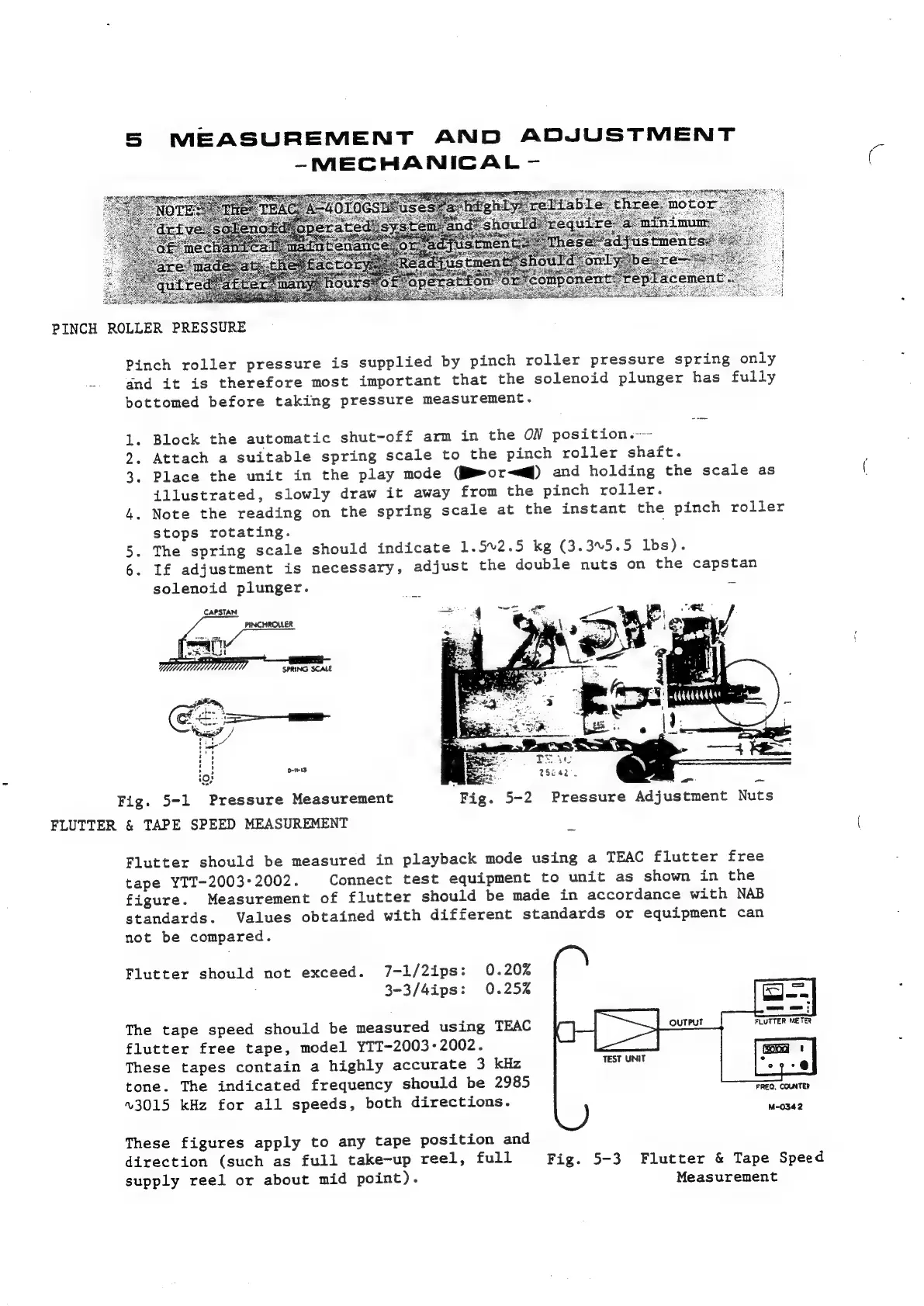 Teac A-4010GSL - Mechanical Measurement and Adjustment; Pinch Roller Pressure; Flutter & Tape Speed Measurement