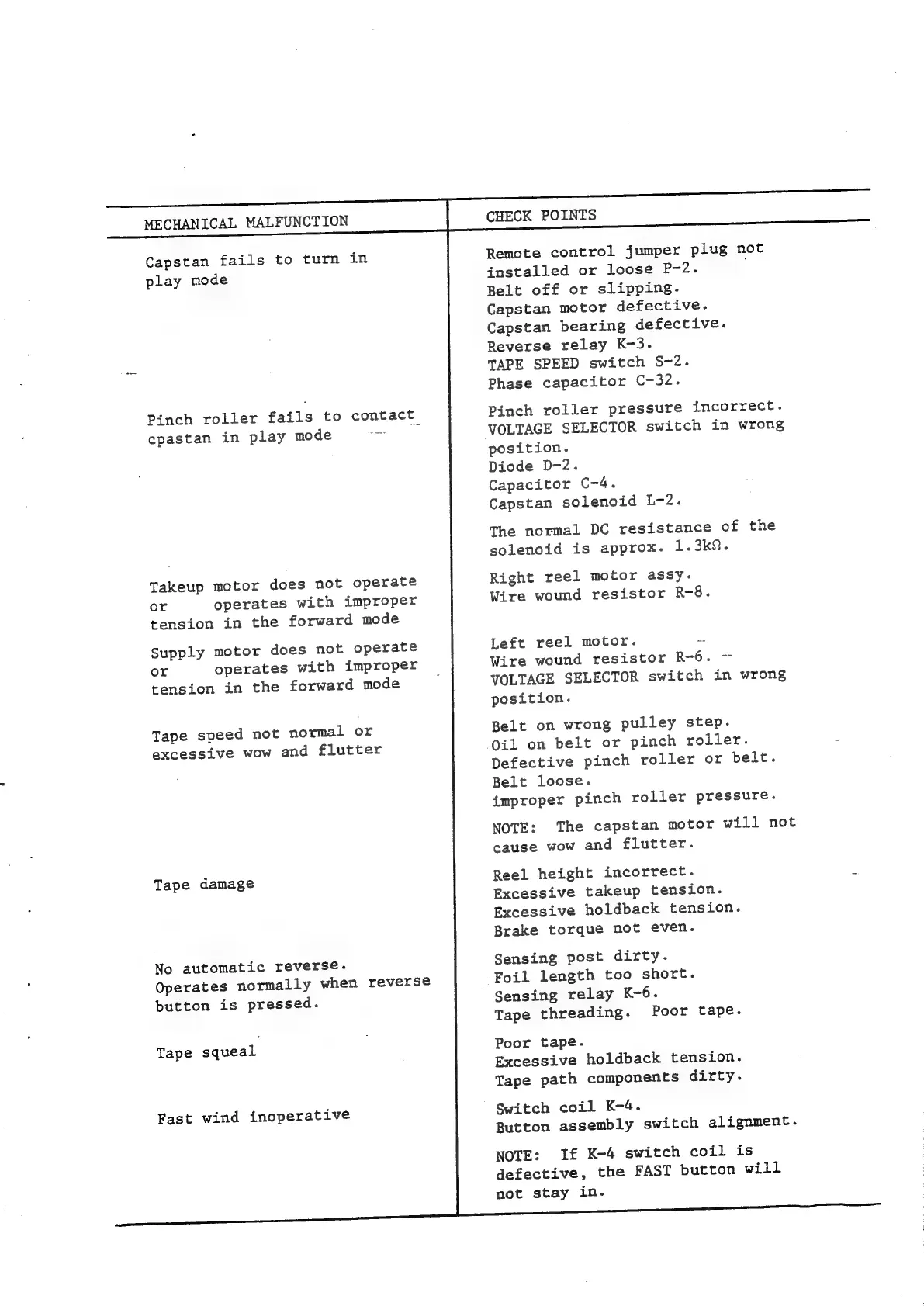 Teac A-4010GSL - Mechanical Malfunctions