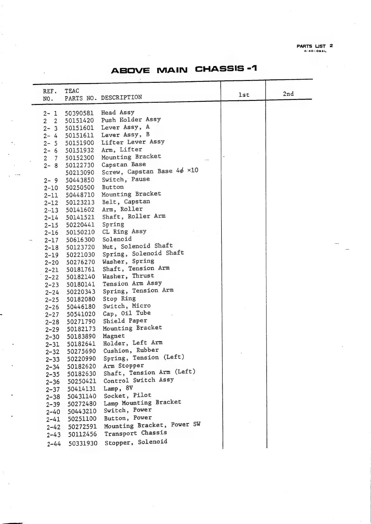 Teac A-4010GSL - Main Chassis Parts Lists and Diagrams