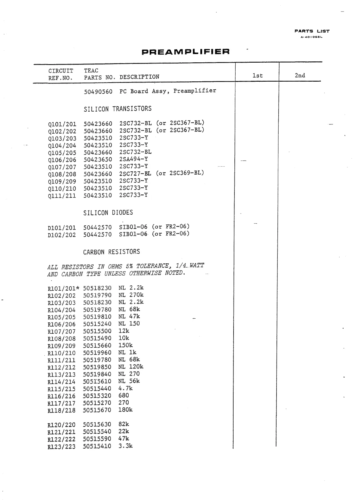Teac A-4010GSL - Preamplifier Components (Transistors, Diodes, Resistors)