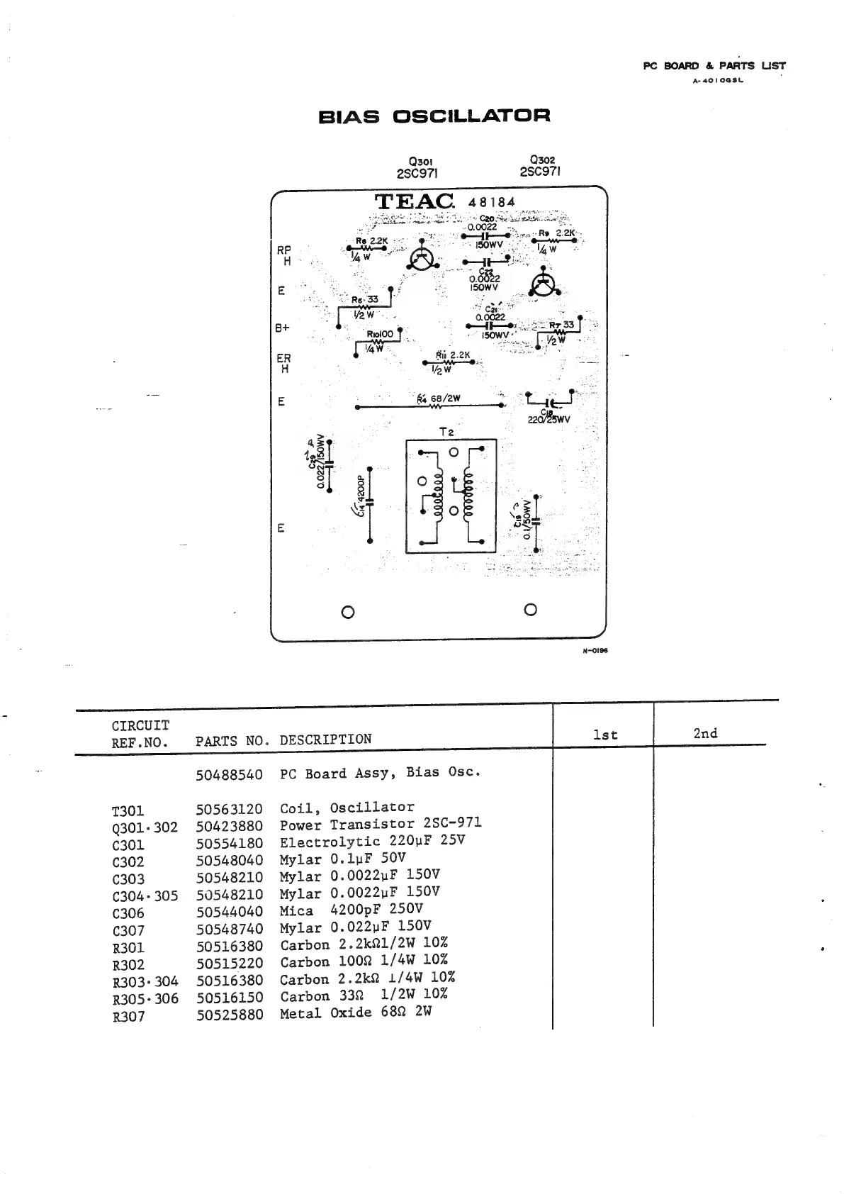 Teac A-4010GSL - Bias Oscillator PC Board and Components