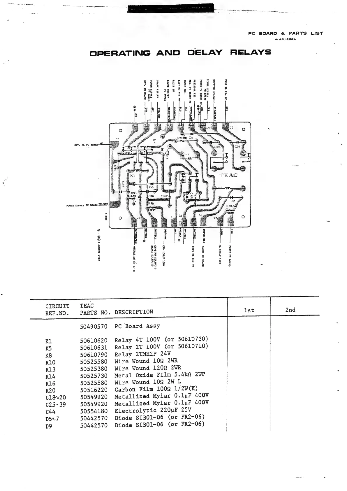 Teac A-4010GSL - Operating and Delay Relays PC Boards