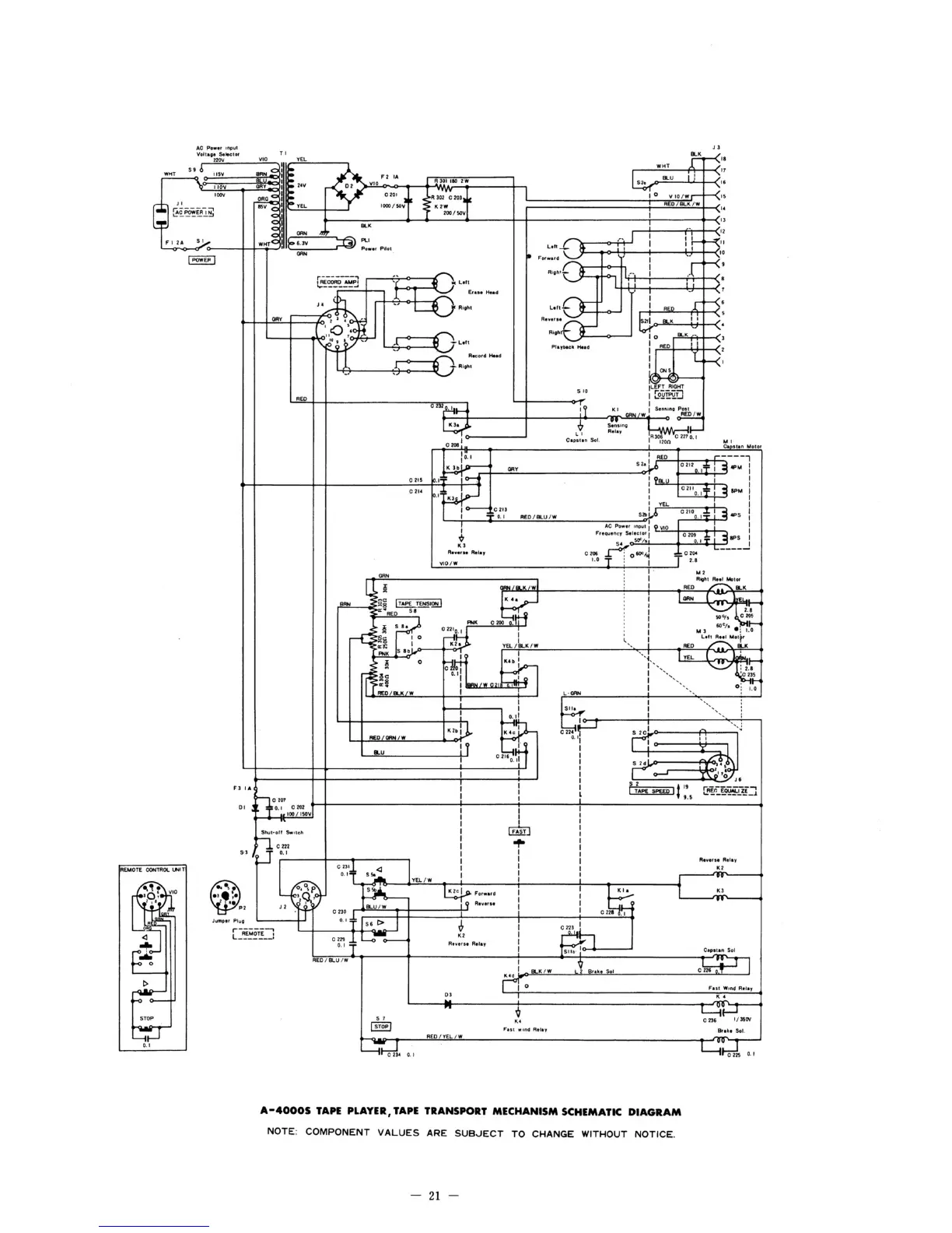 Teac A-4010S - A-40005 Tape Player, Tape Transport Mechanism Schematic Diagram