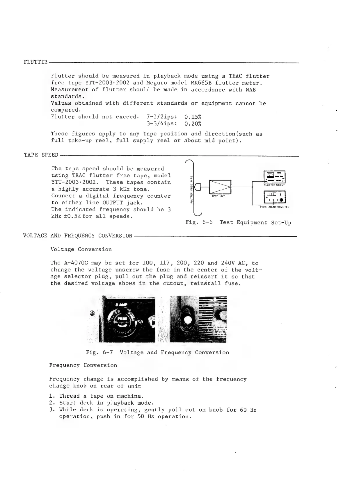 Teac A-4070G - Tape Speed; Voltage and Frequency