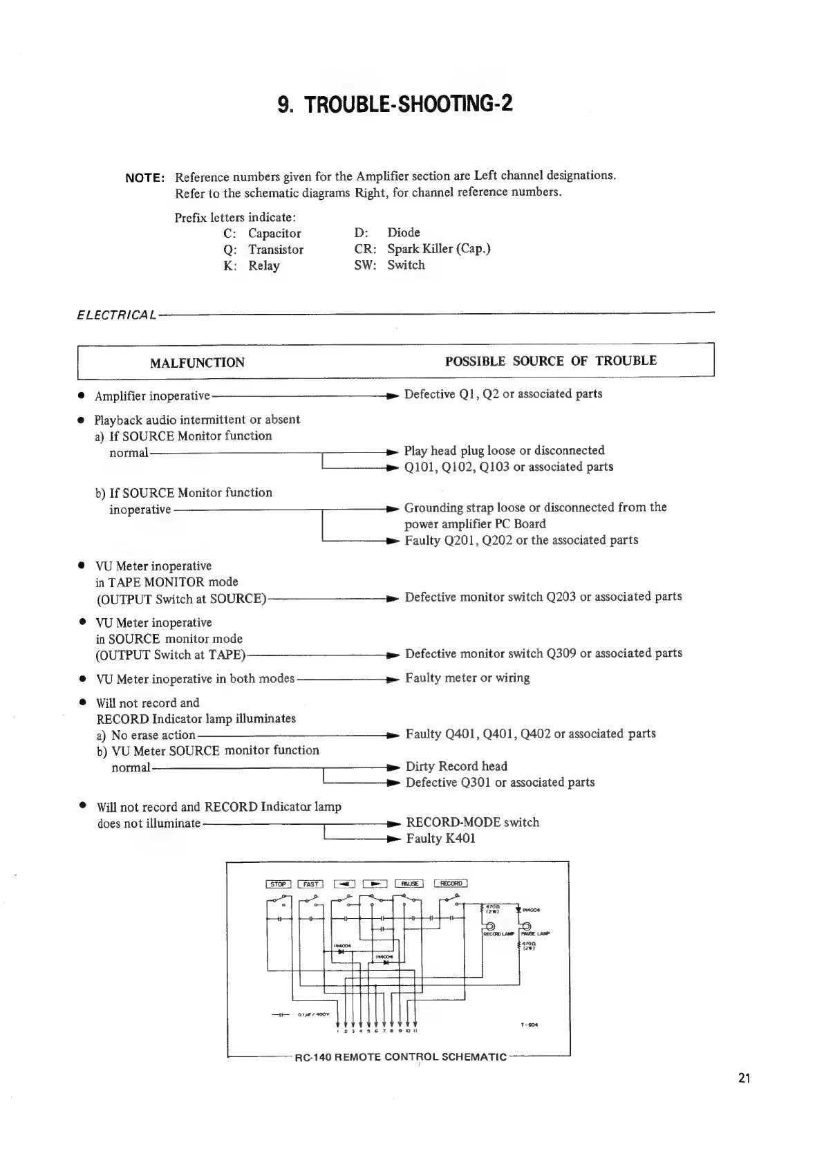 Teac A-4300SX - Trouble-Shooting-2; Amplifier inoperative; Playback audio intermittent or absent
