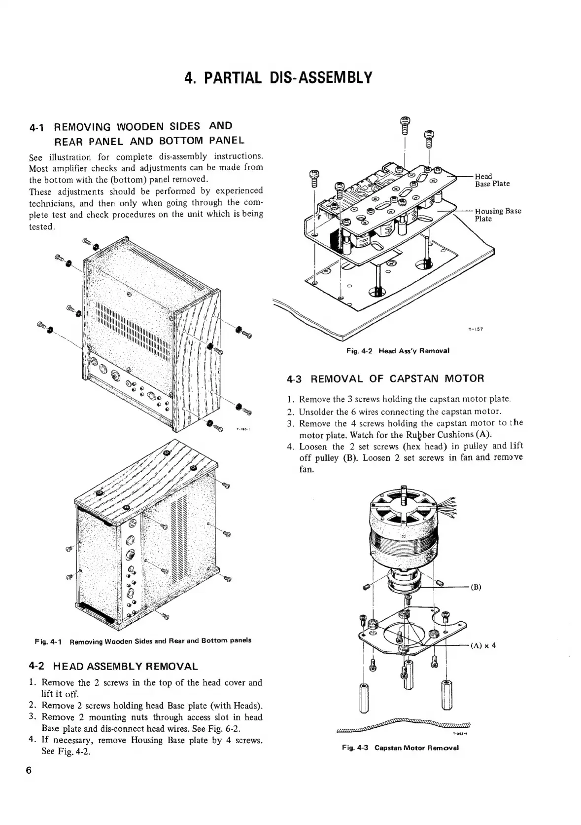 Teac A-4300SX - Partial Dis-assembly; Removing Wooden Sides and Rear Panel and Bottom Panel; Head Assembly Removal; Removal of Capstan Motor