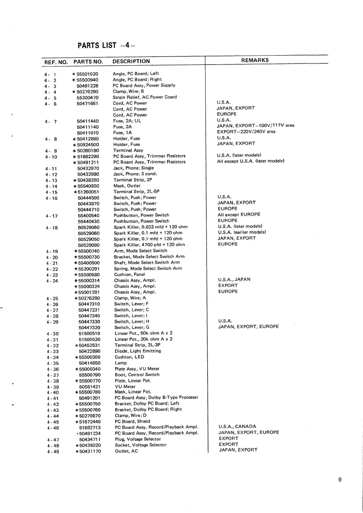Teac A-450 - PARTS LIST -4-