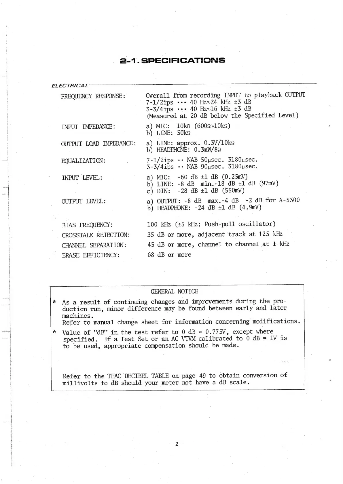 Teac A-5500 - Specifications; Input Impedance; General Notice