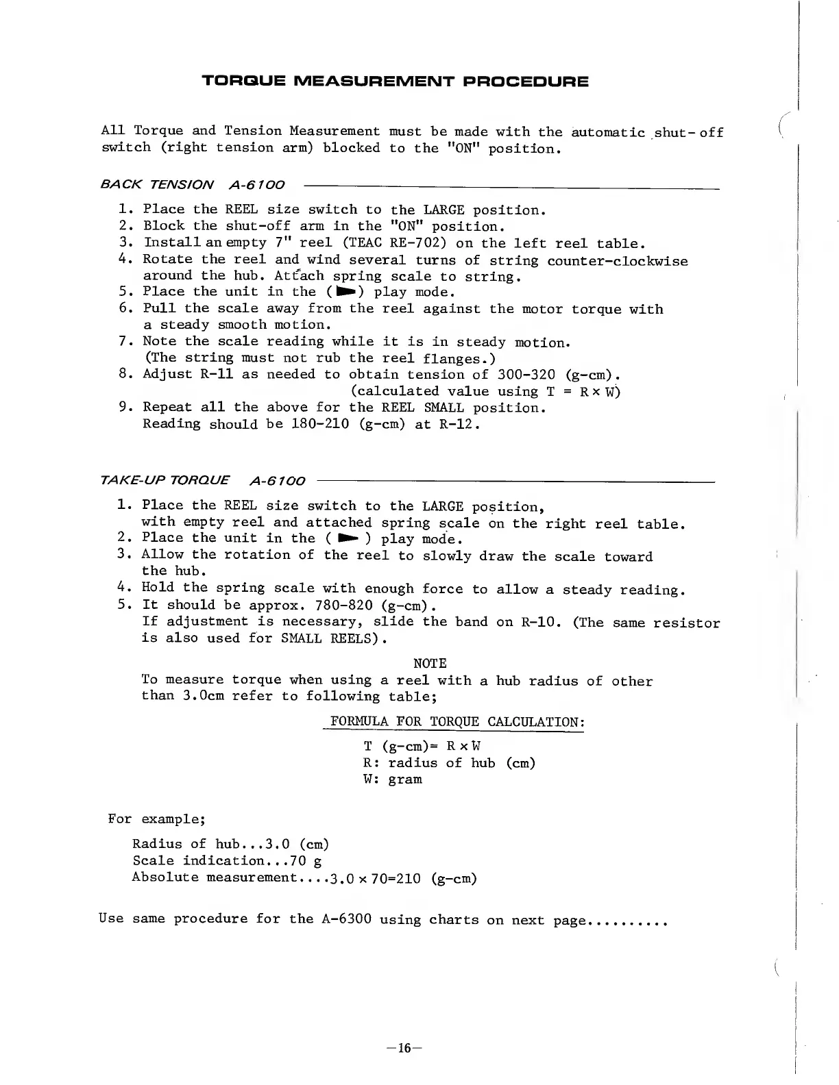 Teac A-6100 - Torque Measurement Procedure