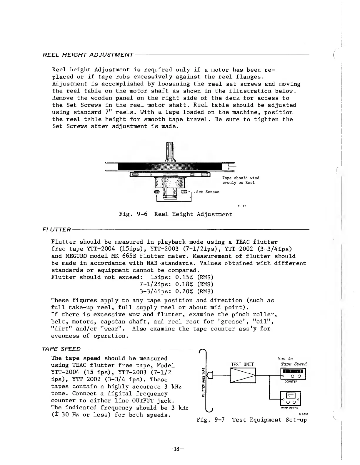 Teac A-6100 - Reel Height Adjustment; Flutter; Tape Speed