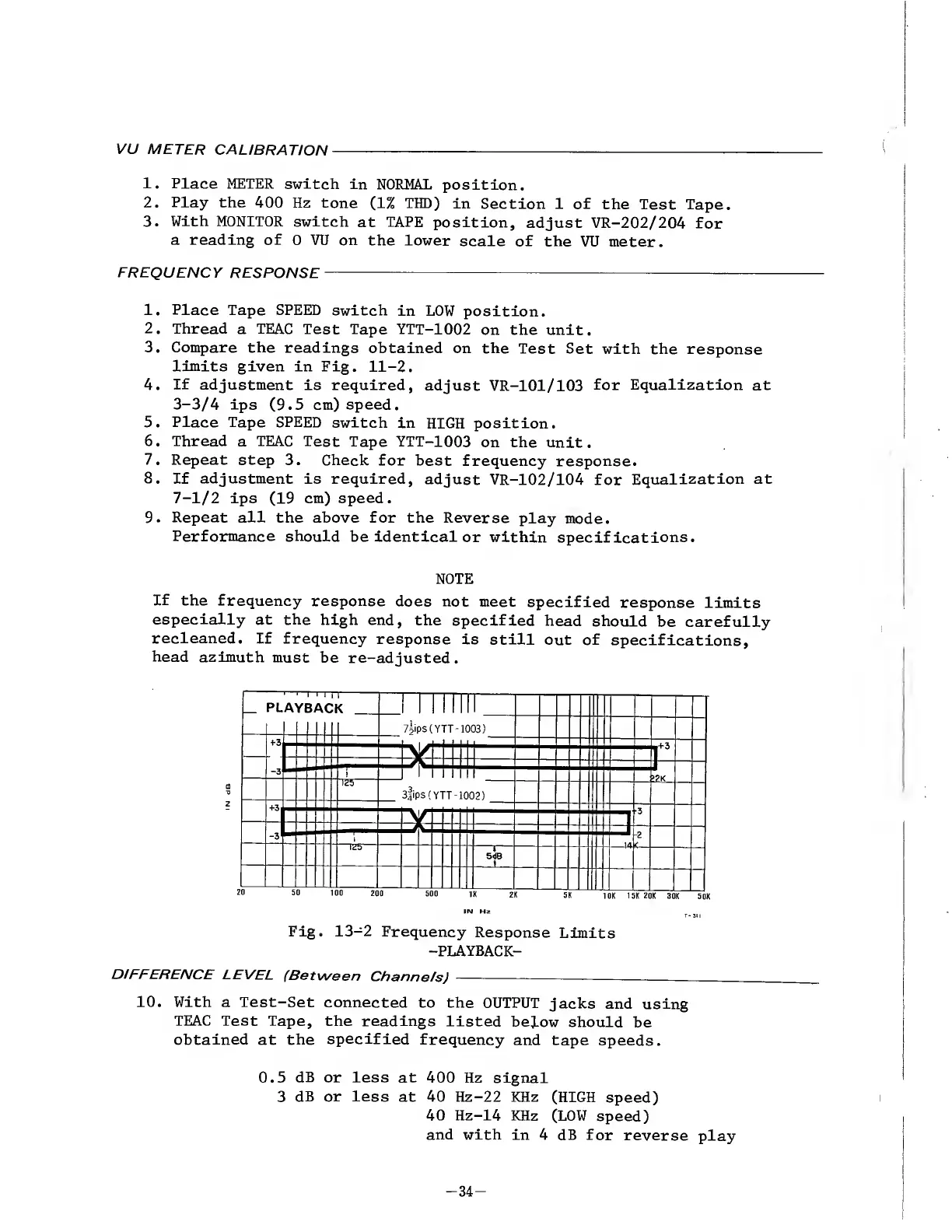 Teac A-6100 - VU Meter Calibration; Frequency Response; Difference Level (Between Channels)
