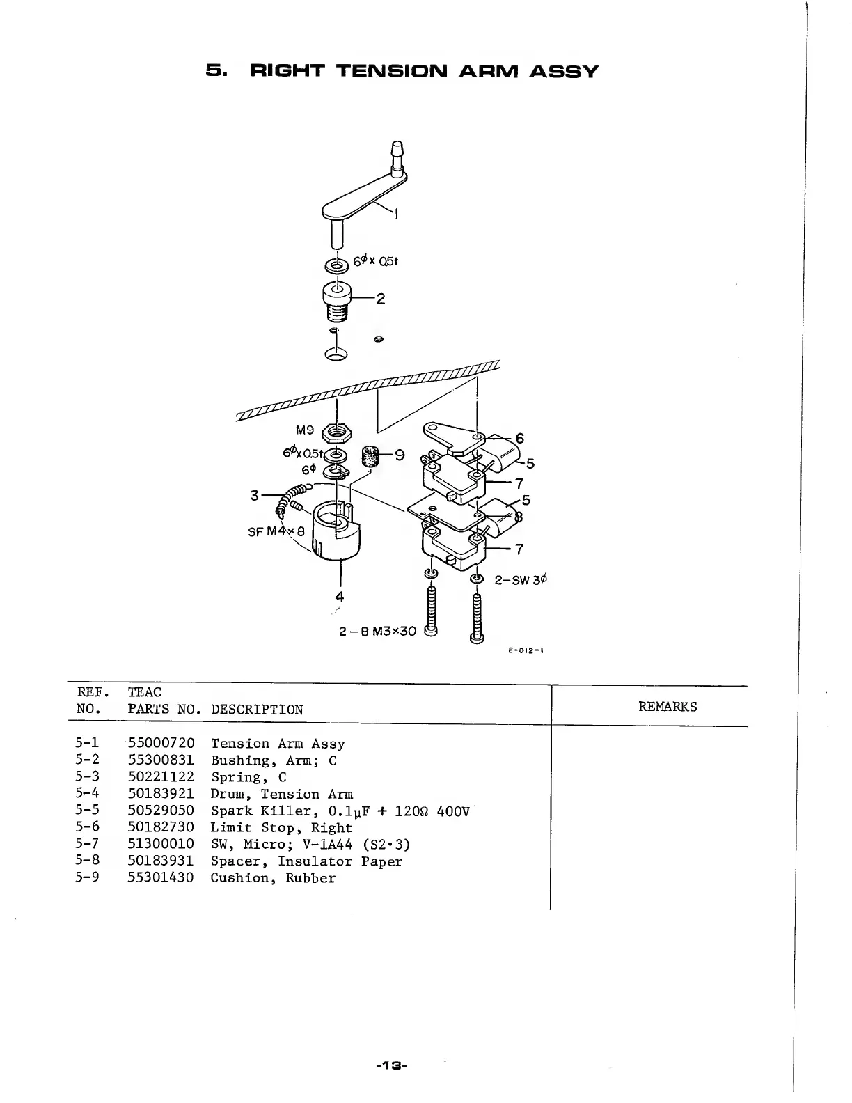 Teac A-6100 - Right Tension Arm Assy
