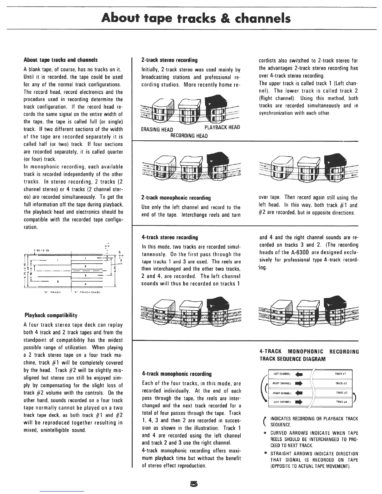 Teac A-6300 - About Tape Tracks and Channels; 2-Track Stereo Recording; Playback Compatibility; 2-Track Monophonic Recording