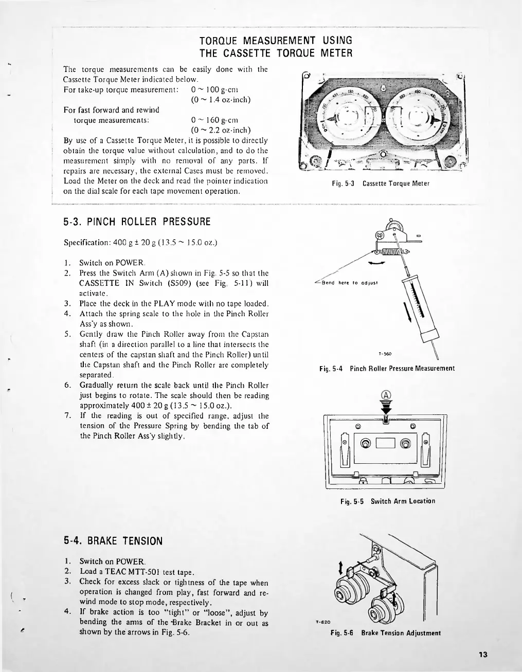 Teac A-650 - Mechanical Adjustments for TEAC A-650; Pinch Roller Pressure Adjustment; Brake Tension Adjustment