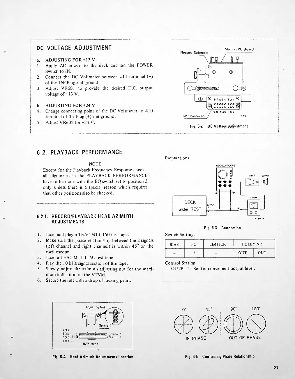 Teac A-650 - Playback Performance Verification; DC Voltage Adjustments (+13 V, +24 V); Record;Playback Head Azimuth Adjustment