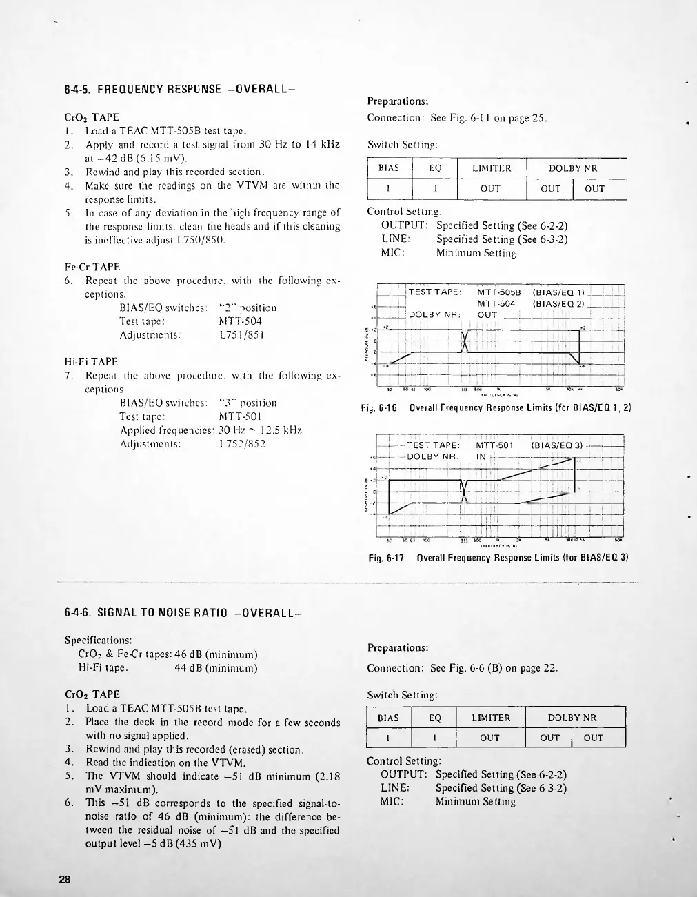 Teac A-650 - Overall Response and Noise Measurements; Overall Frequency Response Testing; Overall Signal-to-Noise Ratio Measurement