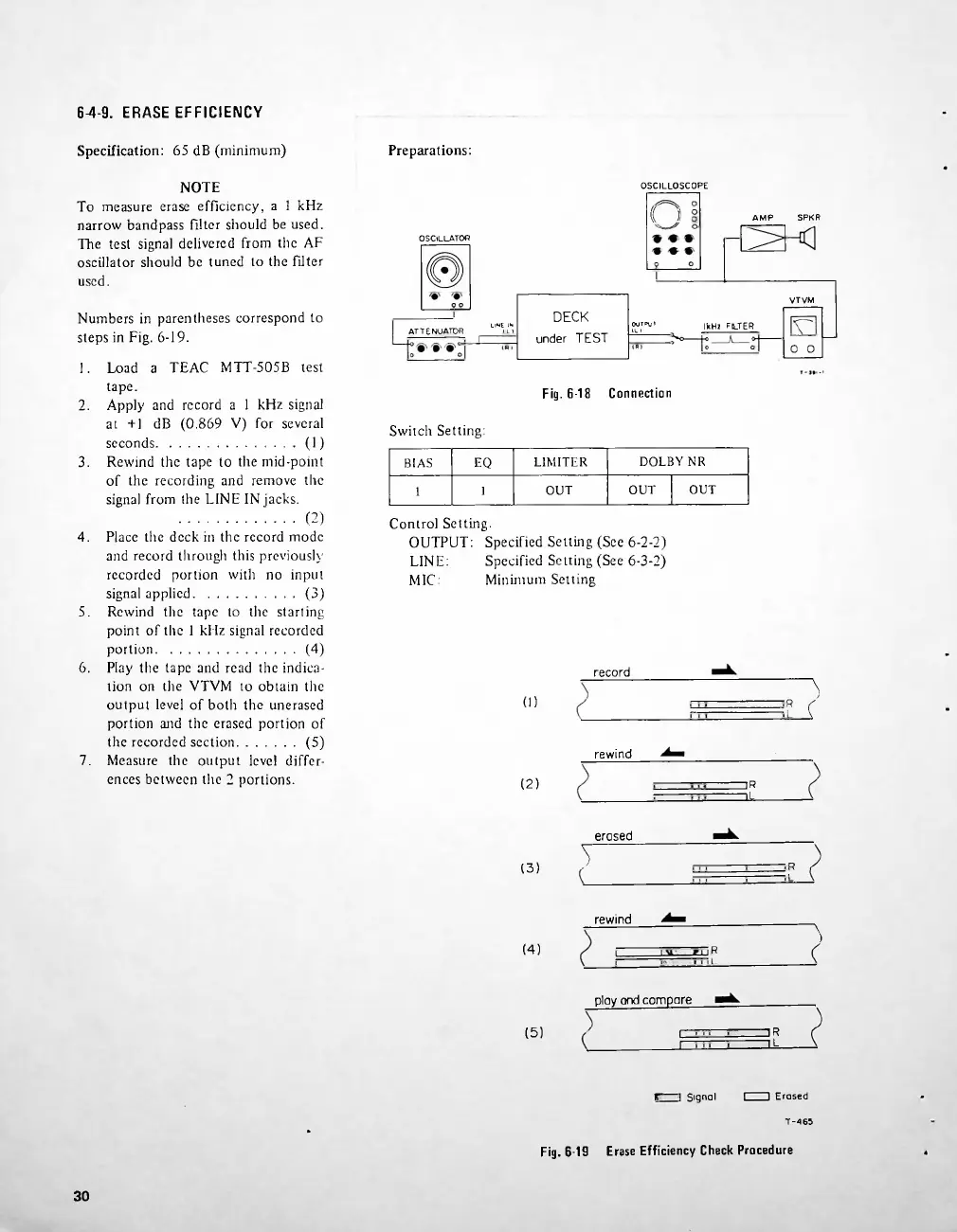 Teac A-650 - Tape Efficiency Tests; Erase Efficiency Measurement
