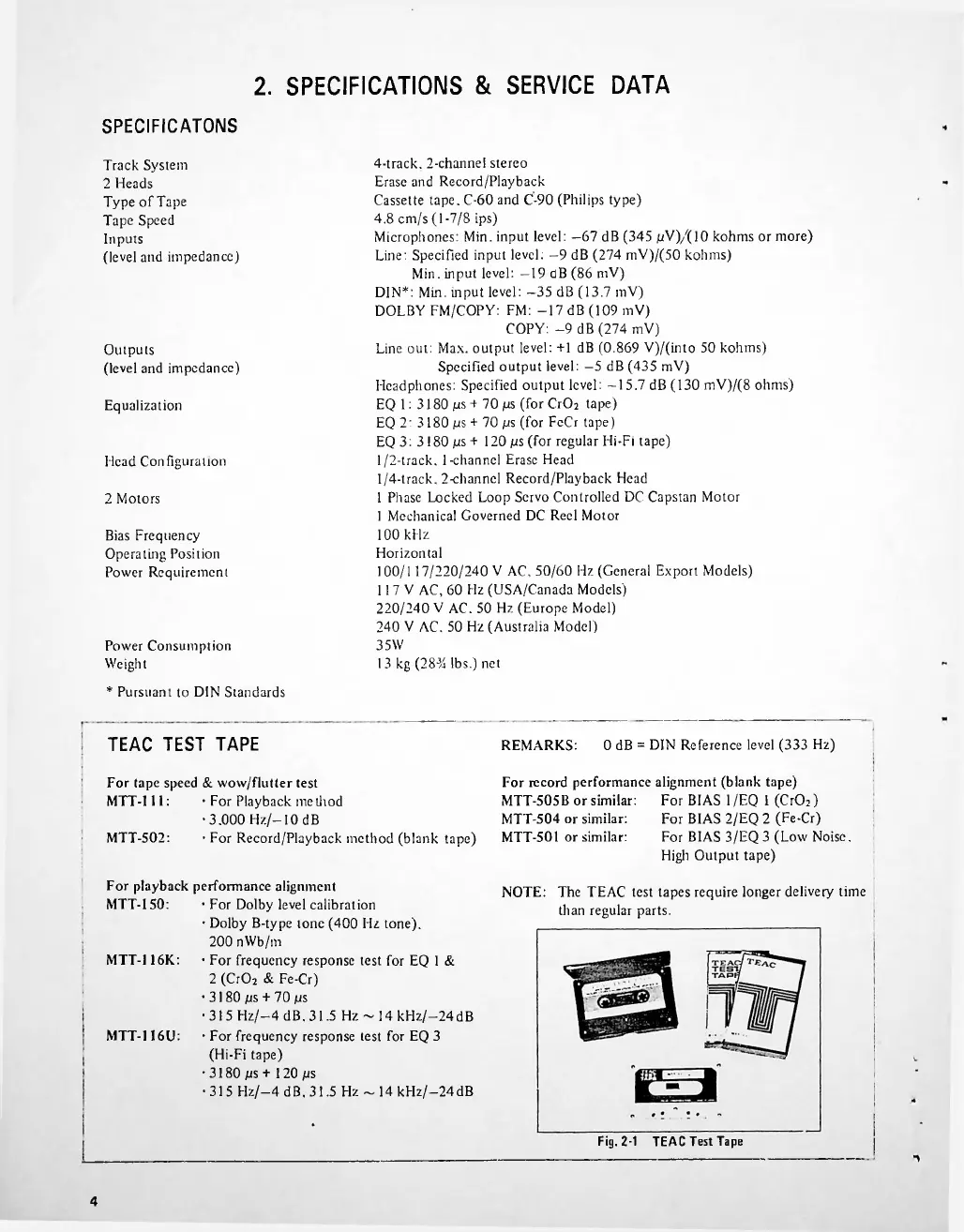 Teac A-650 - TEAC A-650 Specifications and Service Data; TEAC A-650 Technical Specifications
